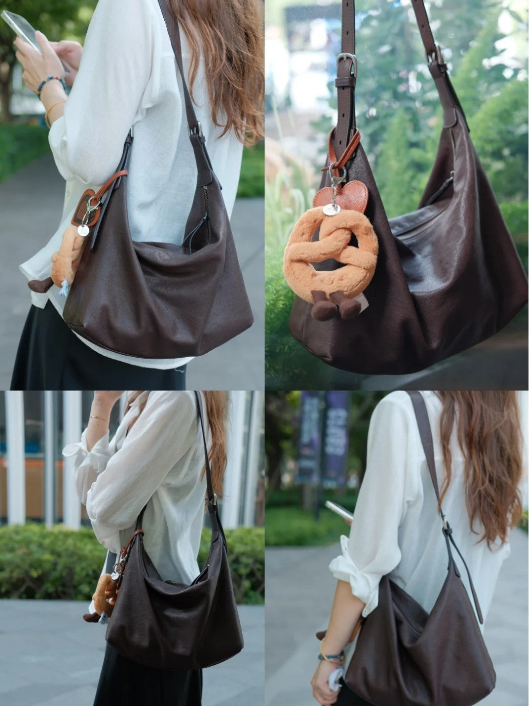 diese minimalistische schultertasche besticht durch ihre weiche form und das luxuriös anmutende lederfinish. der cleane look und die feine handwerkskunst machen sie zum idealen begleiter für den alltag – elegant, funktional und leicht zu kombinieren mit jeder garderobe.