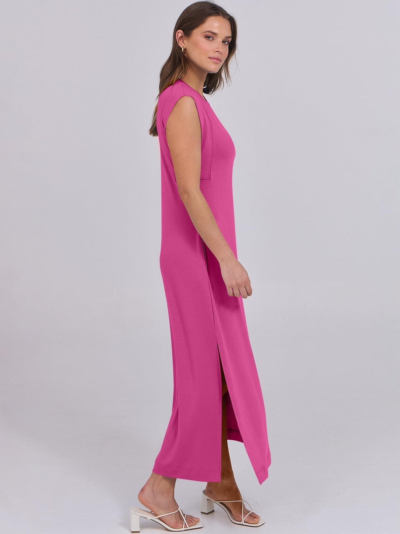 Breezeluxe Legeres Sommer-Maxikleid – Kurze Ärmel und Rundhalsausschnitt