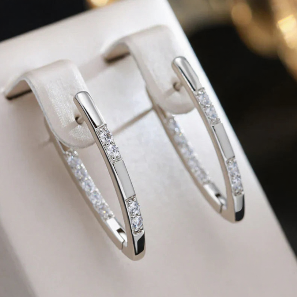 Schlicht im Aufbau, stark im Ausdruck: Diese Creolen vereinen klare Linien mit funkelnden Akzenten für einen modernen Luxusmoment.