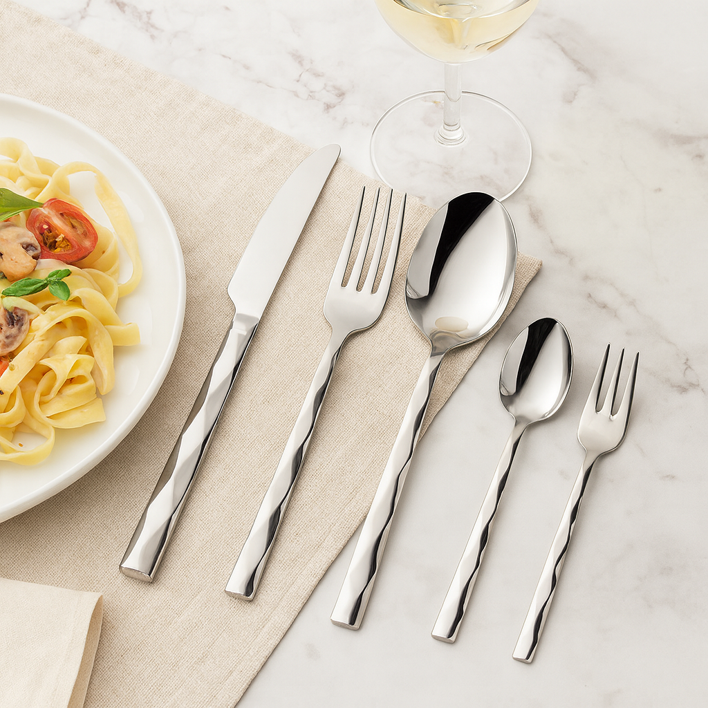 • Luxuriöses Silber-Finish – Hochglanzpoliert für ein raffiniertes Esserlebnis.