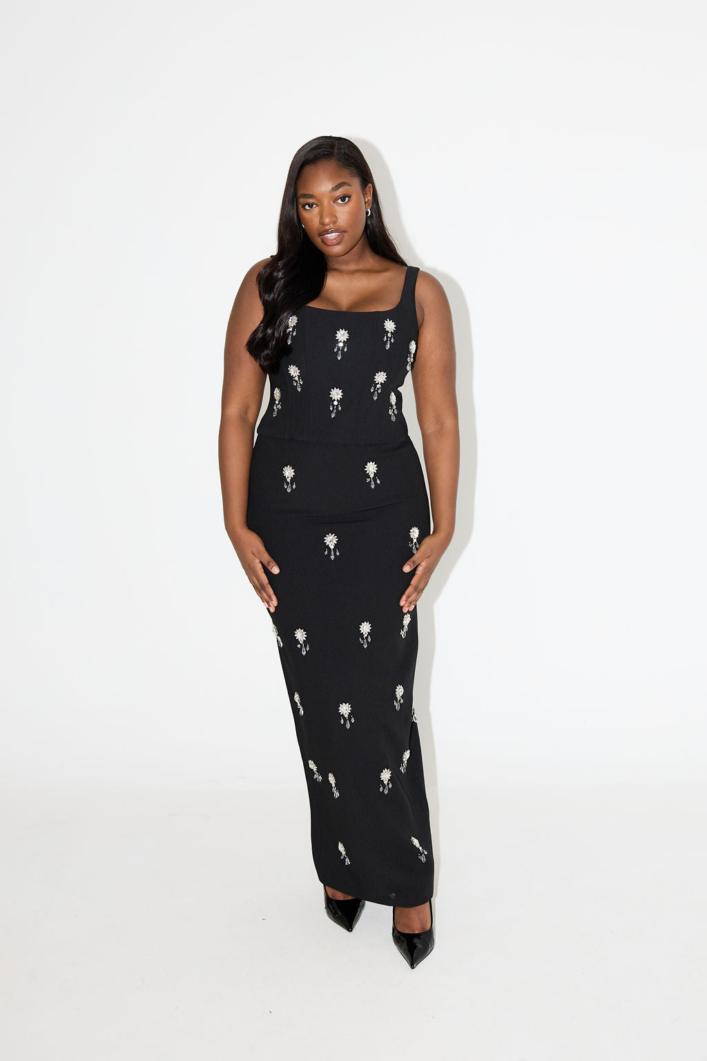 Entdecken Sie unsere neue Verzierung: Kristalle. Verziert mit sorgfältig ausgewählten Kristallverzierungen auf einer raffinierten Maxi-Struktur. Das vielseitigste Party-Outfit für alle Feierlichkeiten dieser Saison – ob elegant oder leger. Kombinieren Sie es mit dem passenden Korsett oder T-Shirt – perfekt für alle Party-Anlässe.