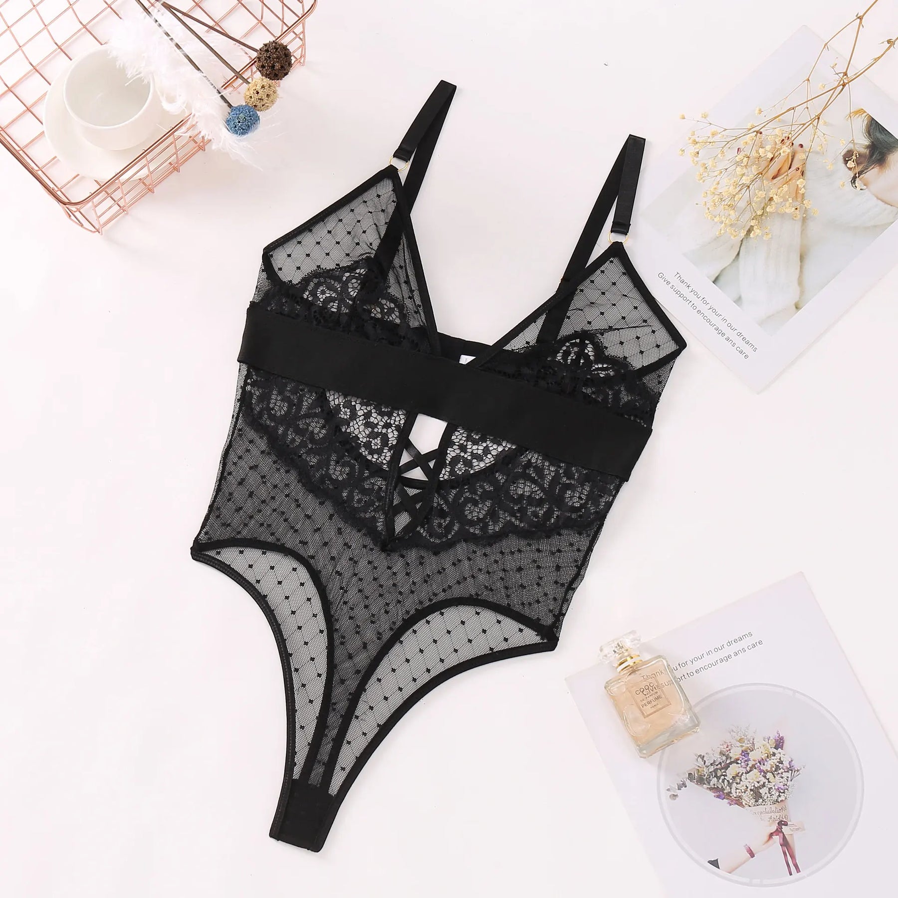 Der Dahlia Nacht Body vereint elegante Raffinesse mit einem Hauch von Verspieltheit. Transparentes Mesh mit feinen Pünktchen und luxuriösen Spitzendetails sorgt für eine sinnliche Ausstrahlung, während das feminine Design Ihre Figur perfekt in Szene setzt. Ideal, um sich selbstbewusst und unwiderstehlich zu fühlen.