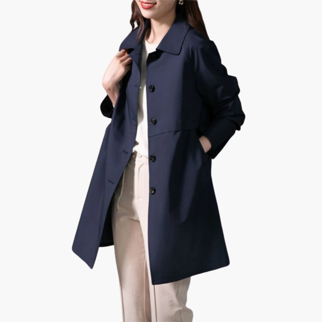 Dieser Damen-Trenchcoat in mittlerer Länge überzeugt mit einem klassischen Kragen und einer Knopfleiste für vielseitige Outfits. Der Mantel verfügt über lange Ärmel und zwei praktische Fronttaschen. Sein schlicht geschnittener Stil macht ihn passend zu Hosen, Kleidern oder Jeans in Übergangszeiten wie Frühling und Herbst.