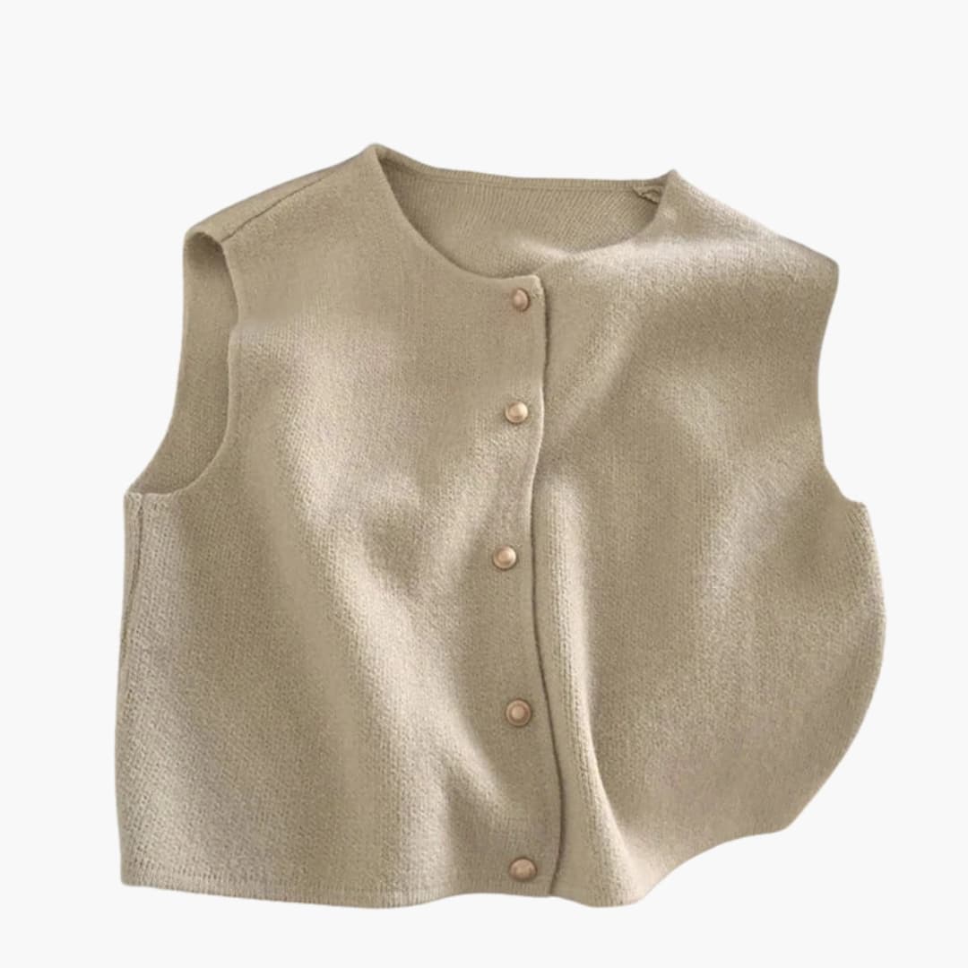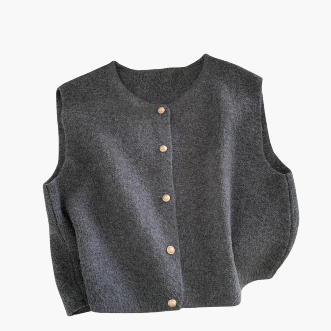 Gestrickte Damenweste mit Rundhalsausschnitt und Knopfleiste