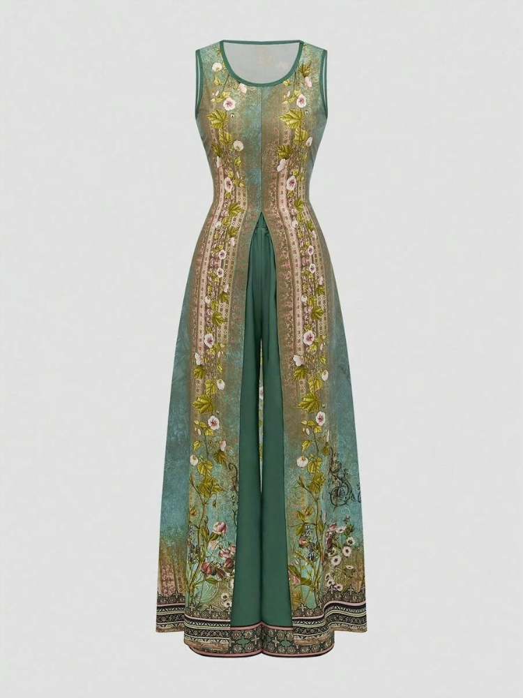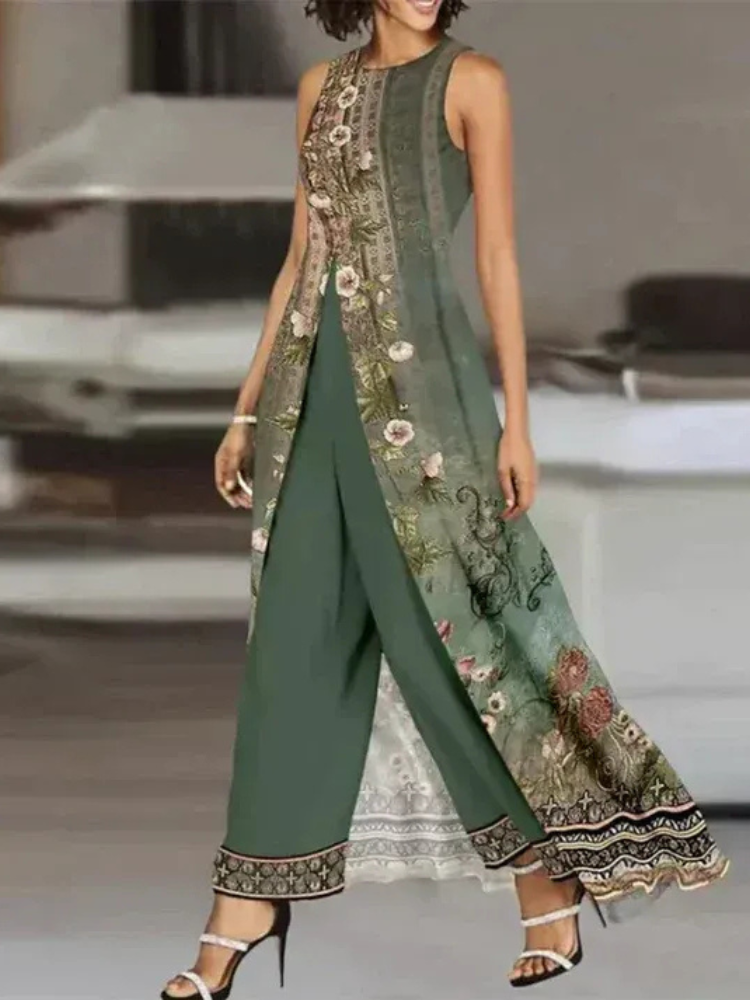 Dieses ärmellose lange Oberteil in Kombination mit der fließenden Hose verleiht deinem Outfit eine moderne und mühelose Ausstrahlung. Der figurfreundliche Schnitt sorgt für eine stilvolle Silhouette – perfekt für Freizeit, Alltag oder besondere Anlässe. Ohne überladen zu wirken, setzt dieses Set klare Statements in Sachen Stil.