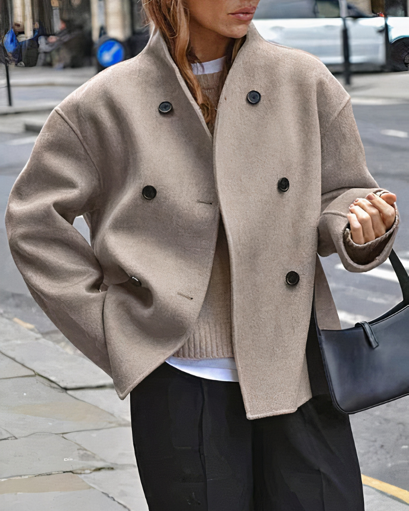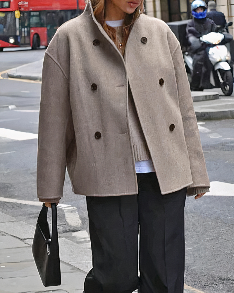 Der Damen zeitloser Doppelreiher-Mantel bringt Eleganz und moderne Schlichtheit perfekt zusammen. Mit seinem markanten Schnitt verleiht er jedem Outfit eine stilvolle Note. Ob im Alltag oder bei besonderen Gelegenheiten – dieser Mantel sorgt immer für einen souveränen Auftritt.
