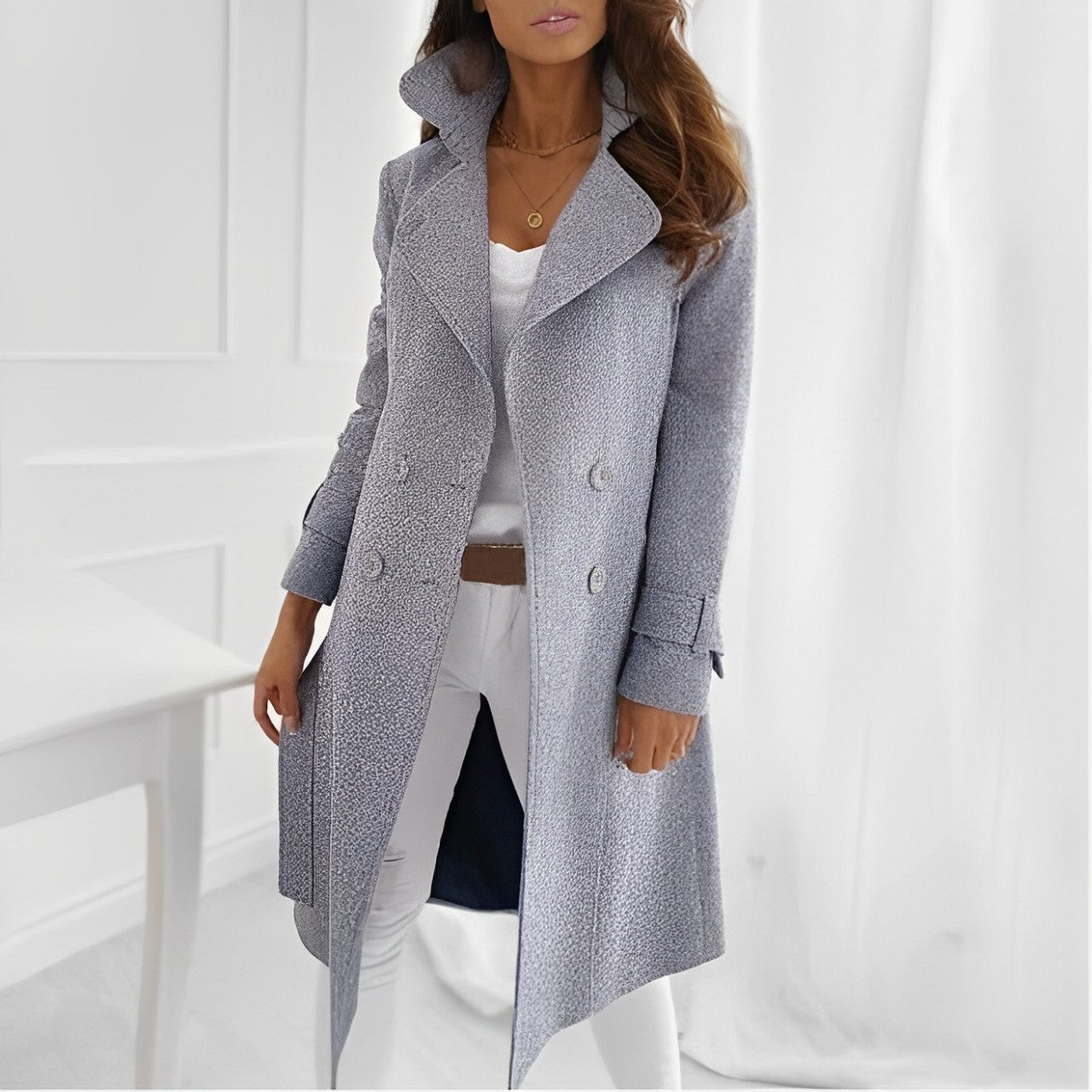 Eleganter langer Wollmantel mit Knöpfen für Frauen