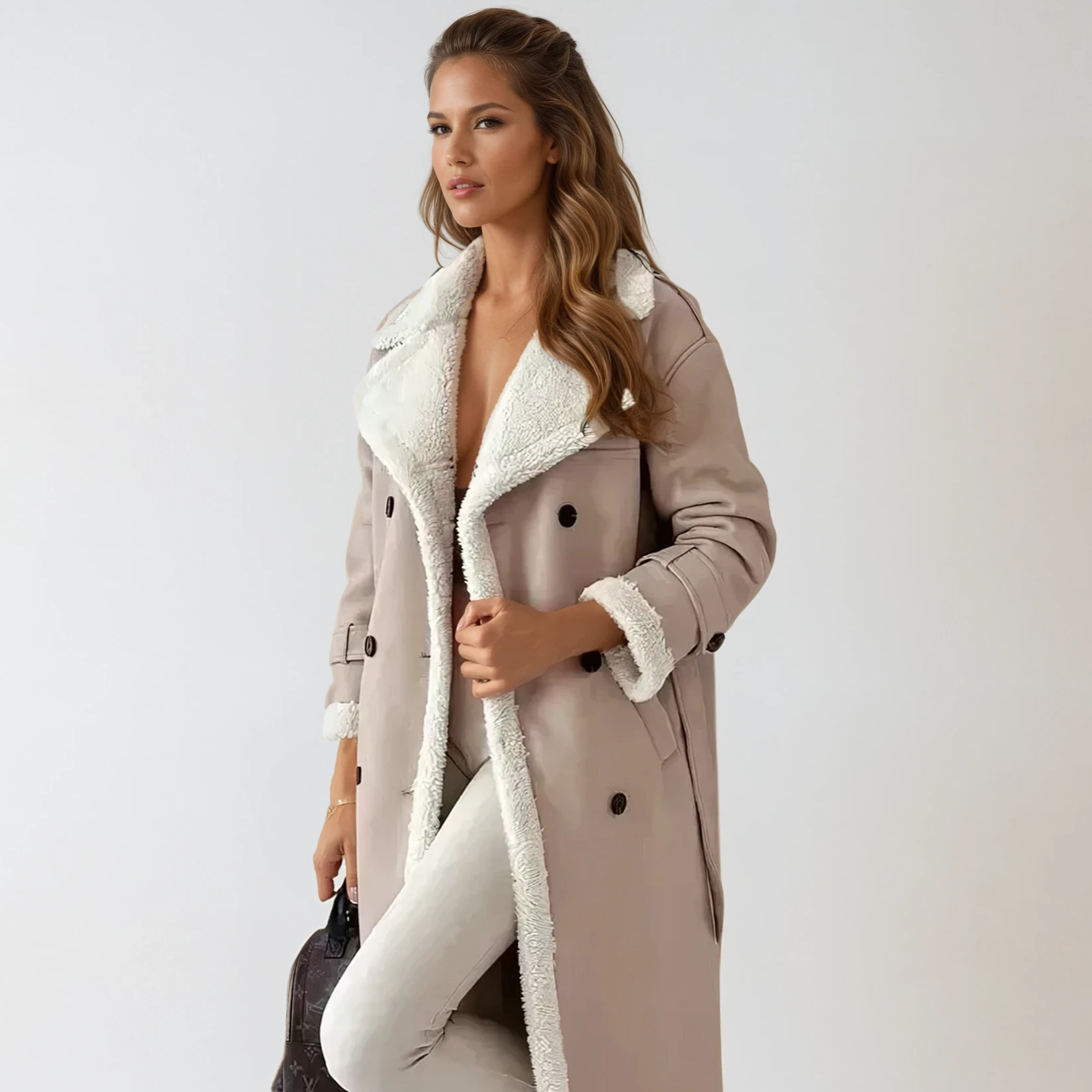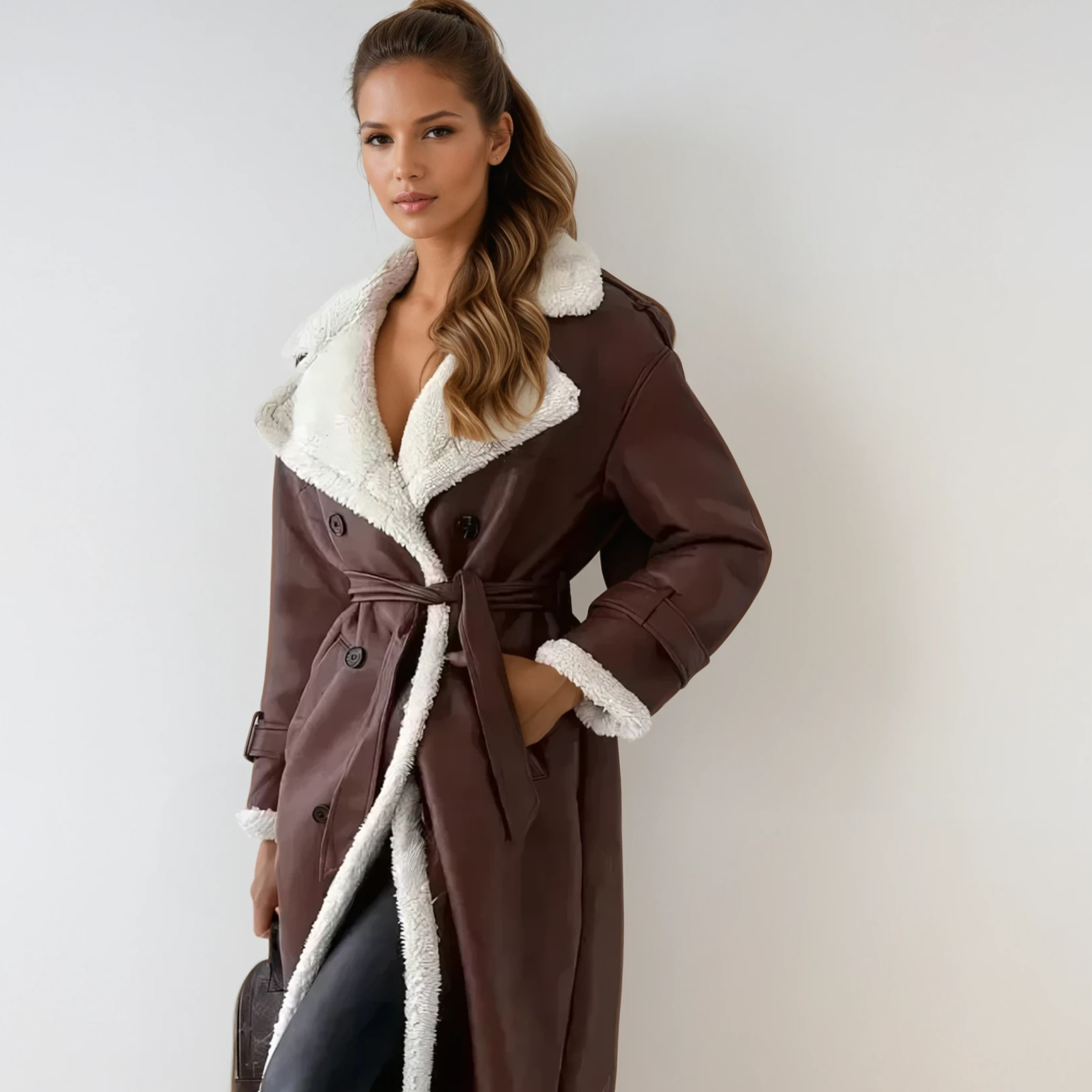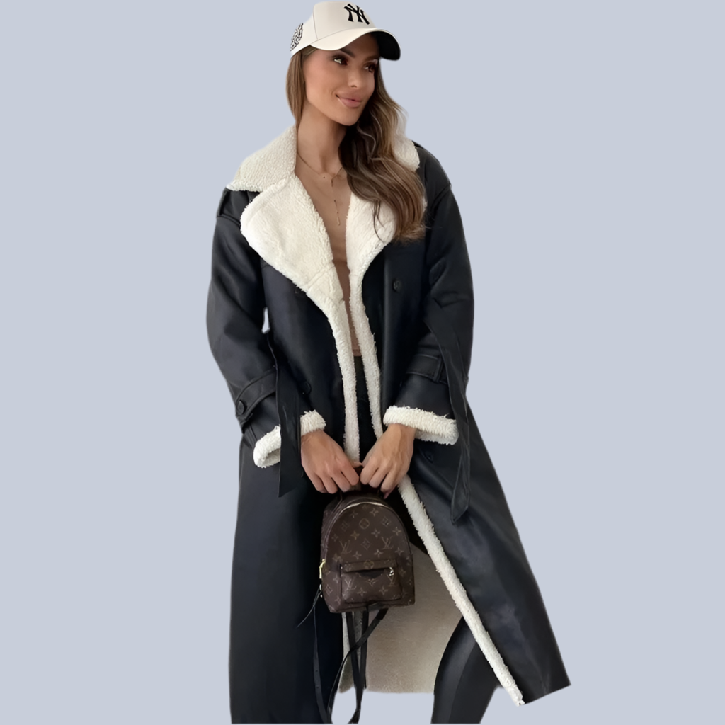 Eleganter Mantel | Kunstleder & Teddyfutter | Stilvoll & Kuschelig
