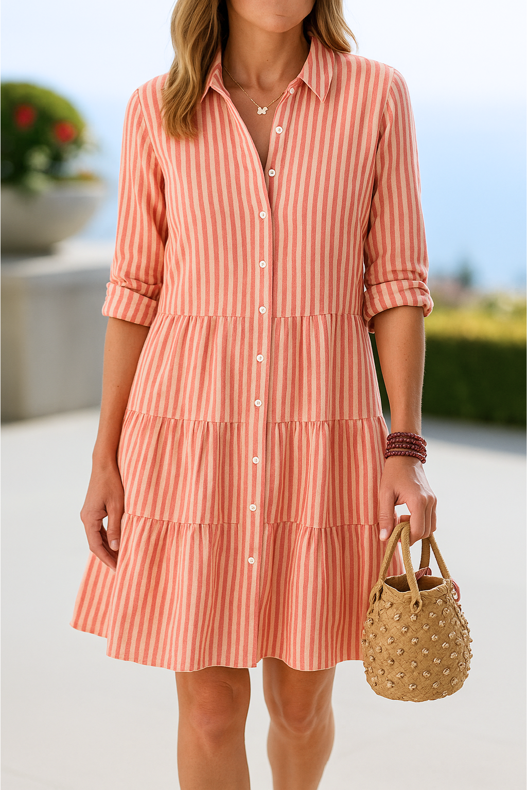 Die Esther Das gestreifte Hemdblusenkleid von ™ ist mehr als nur ein Kleid, es ist ein Erlebnis. Ein zeitloser Klassiker, der Eleganz und Komfort vereint und Ihnen zu jeder Tageszeit ein selbstbewusstes und schönes Gefühl gibt. Dieses Kleid ist für Frauen gedacht, die keine Kompromisse eingehen: die perfekte Balance aus Raffinesse und Funktionalität, ohne auf Komfort zu verzichten.