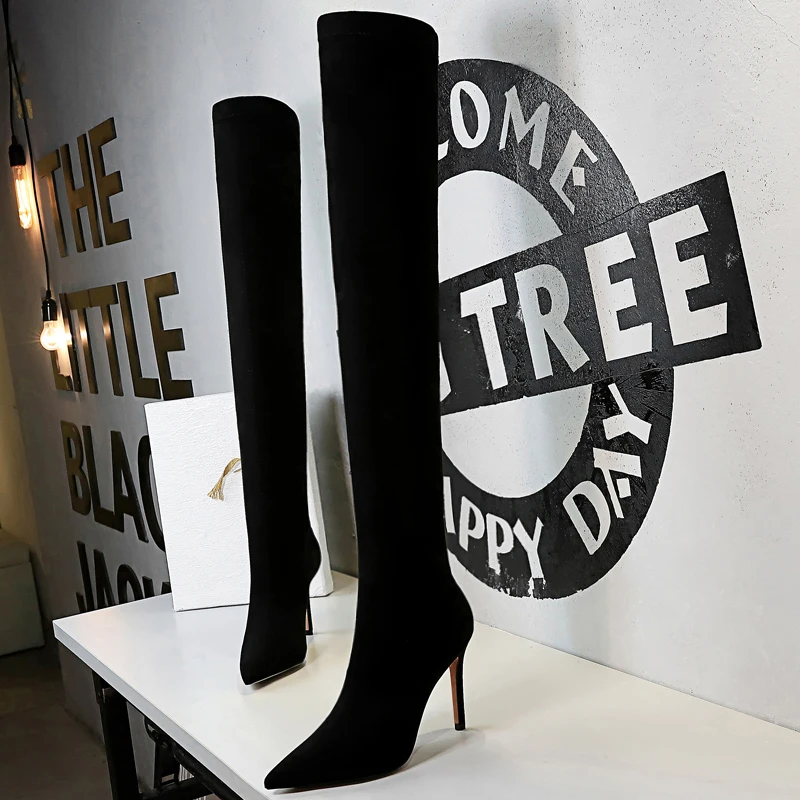Die Gianna Suede Stiefel sind entworfen, um ein echtes Statement zu setzen. Diese schwarzen Overknee-Stiefel mit hohem Absatz und glatter Wildlederoberfläche verleihen jedem Outfit einen Hauch von Luxus. Der hohe Absatz verlängert die Beine, während das Overknee-Design für eine kühne und elegante Optik sorgt. Ein Must-Have für die Garderobe in dieser Saison.