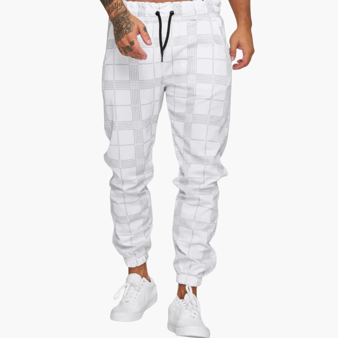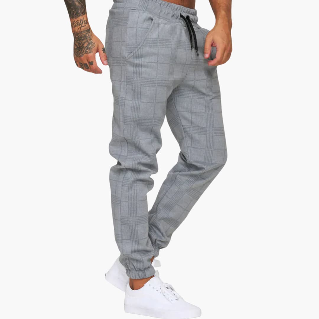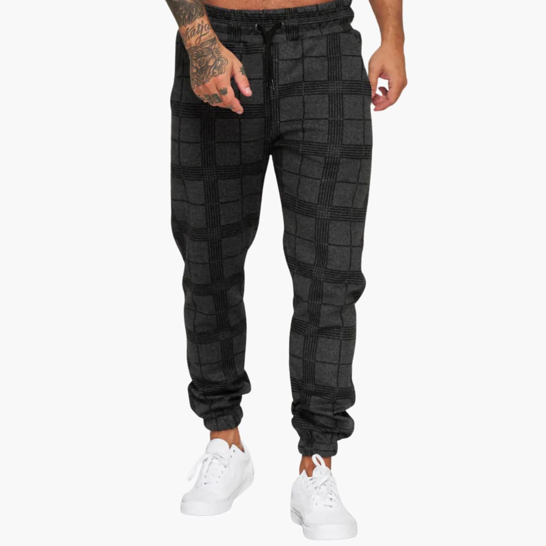 Herren Jogginghose mit Karomuster und Bündchen aus Fleece
