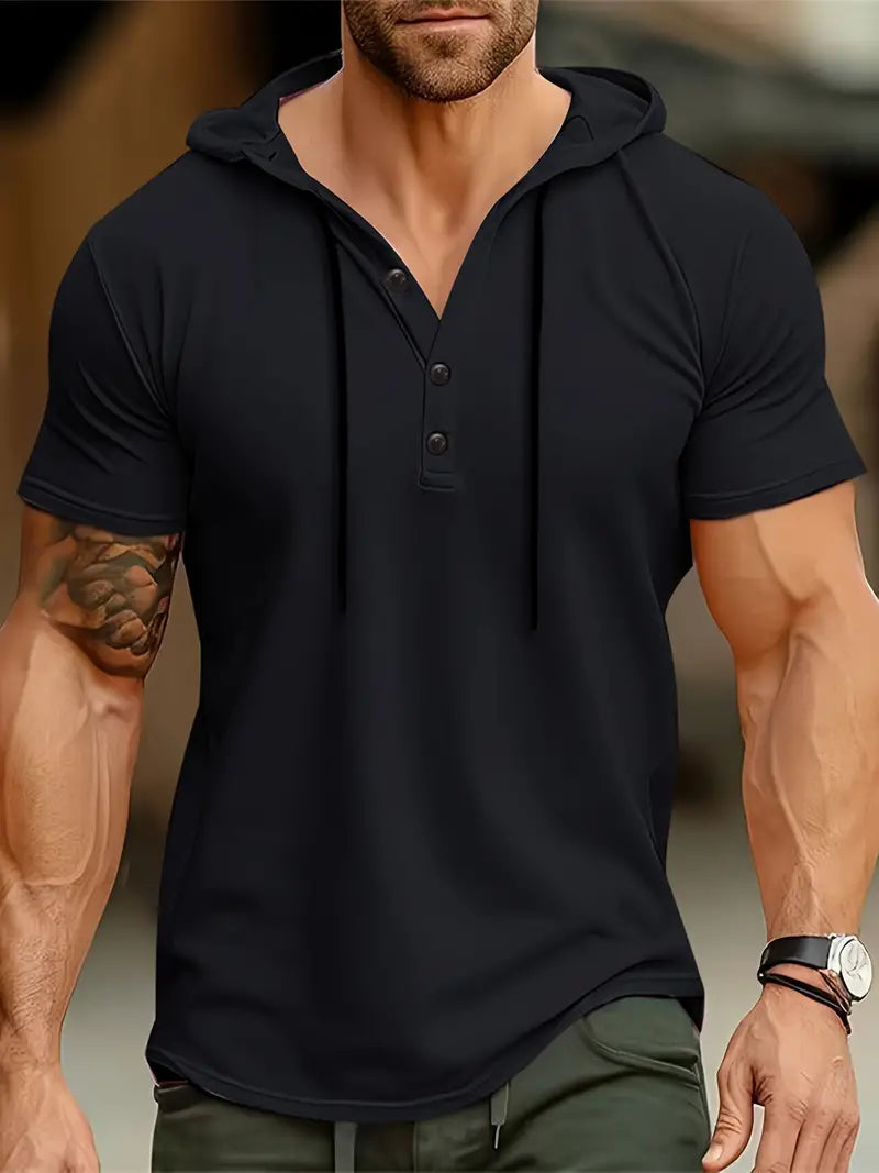 Herren Stretch Slim Fit Kurzarm-Hemd mit Kapuze
