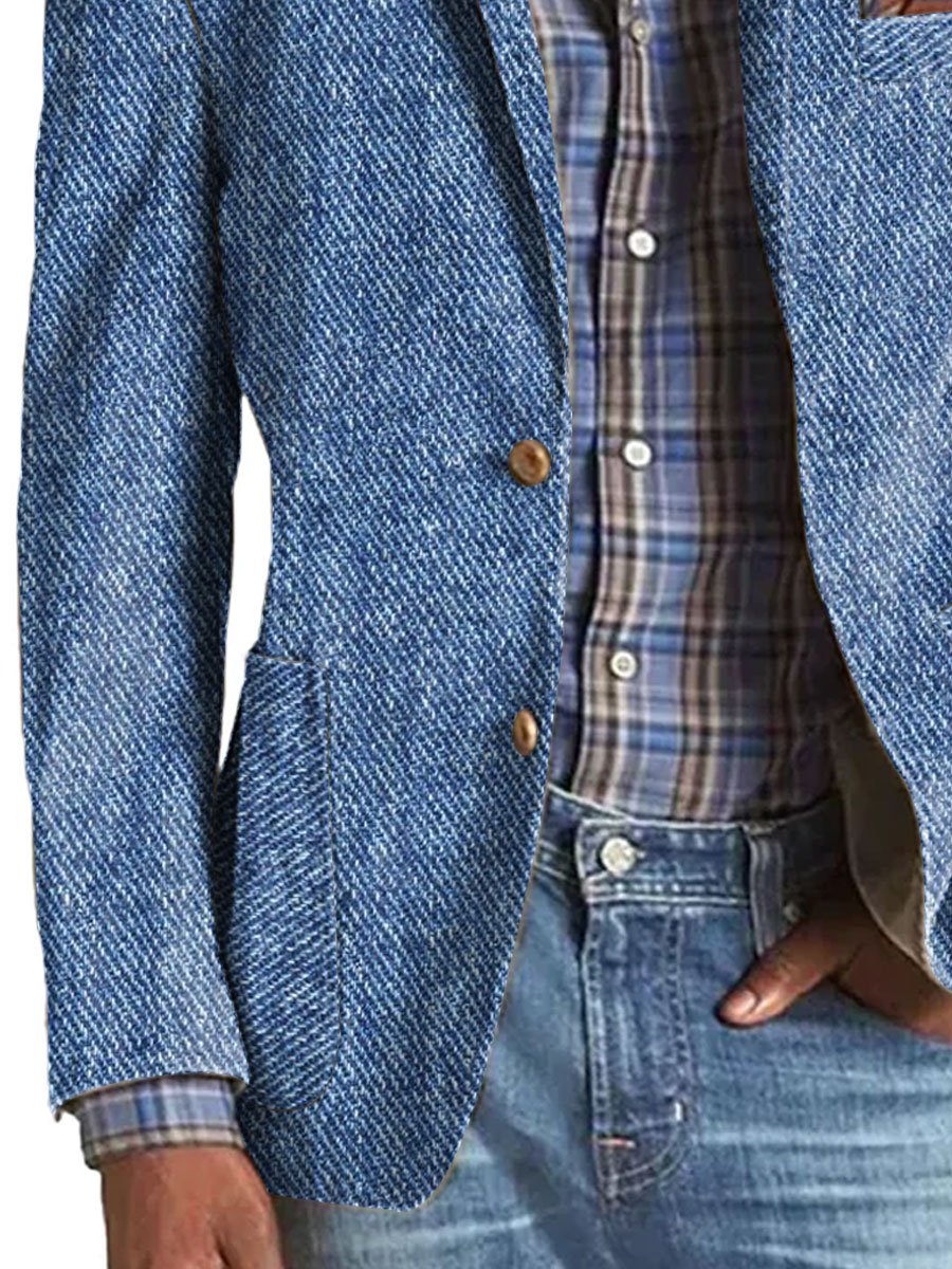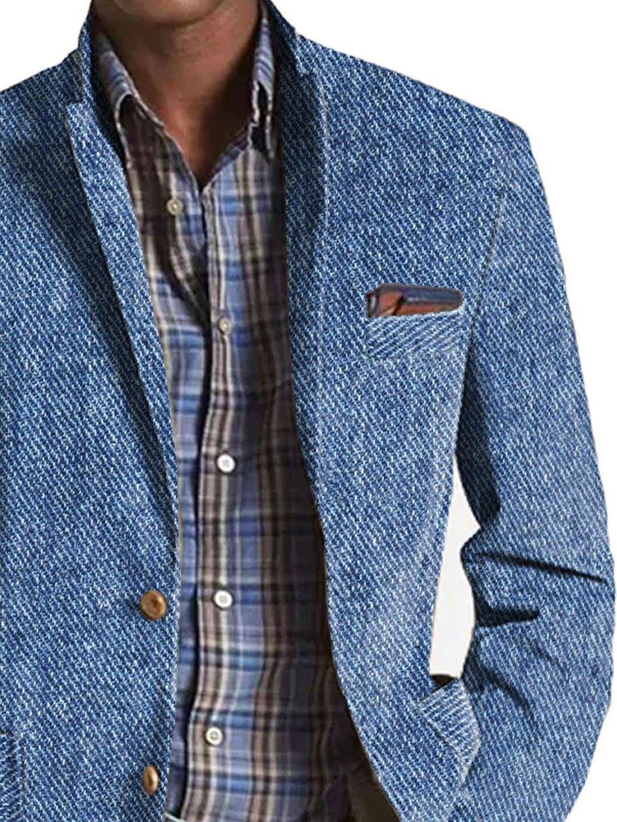 Herren Vintage Baumwolle Twill Blazer mit Reverskragen und Mehrfachtaschen