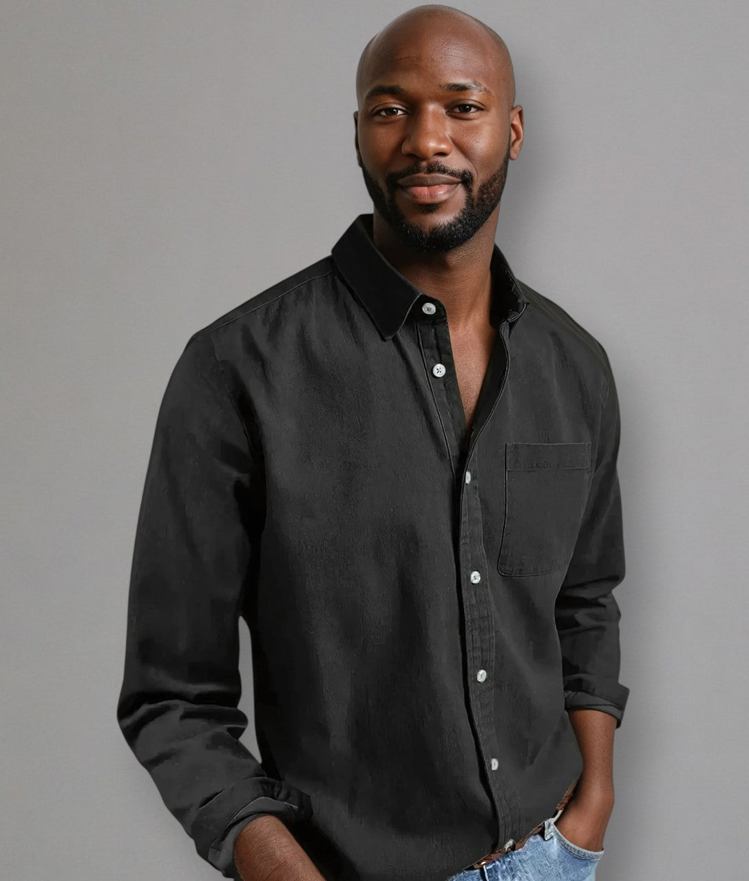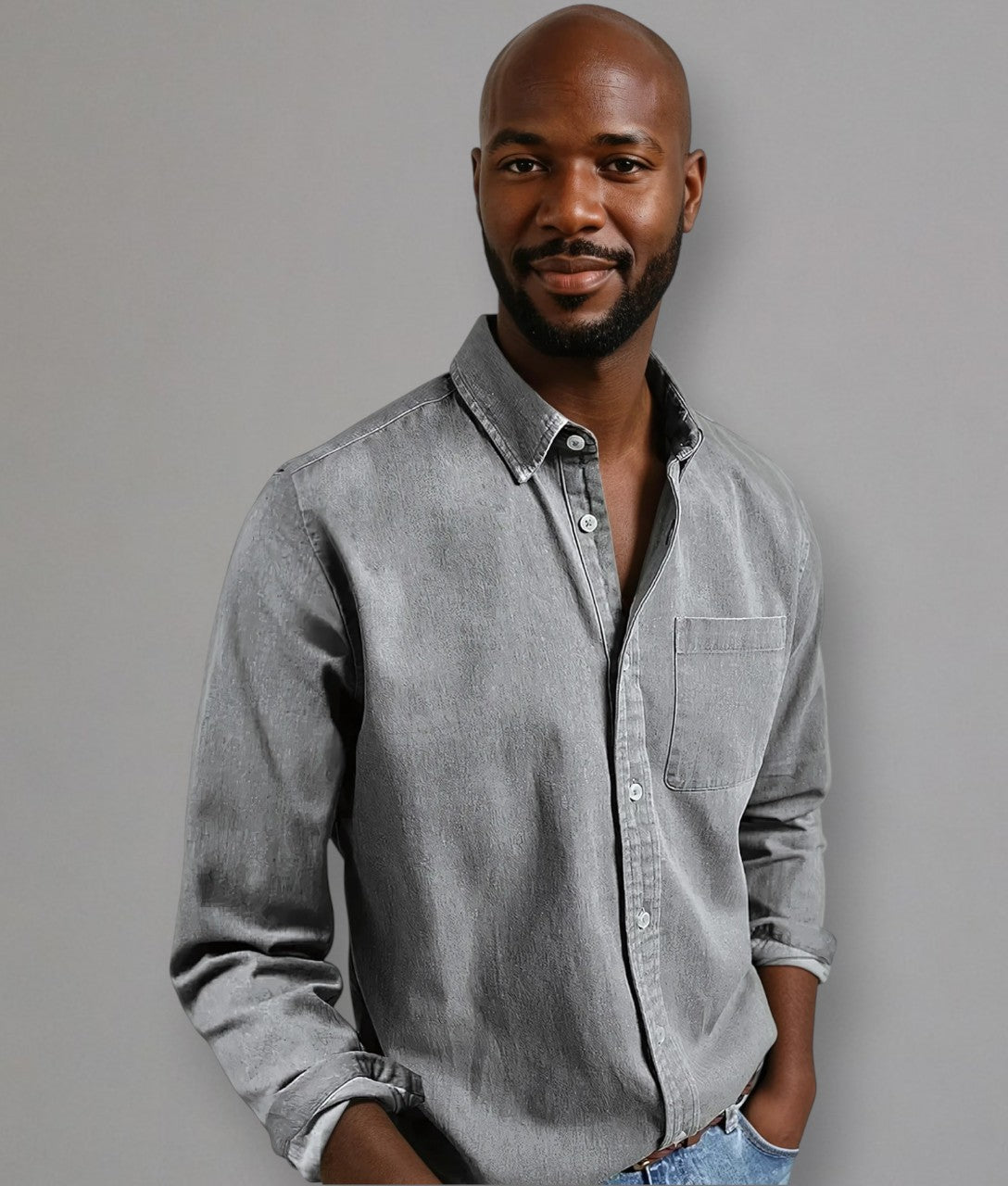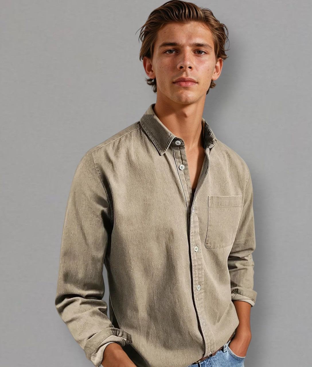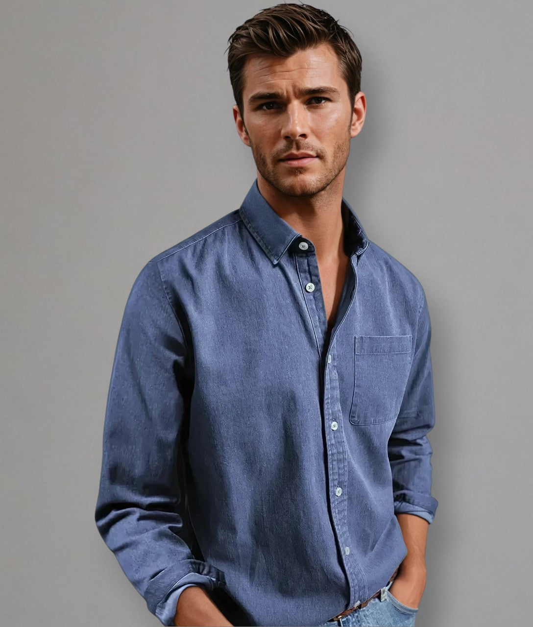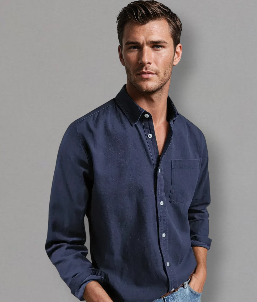 - Details: Klassischer Kragen, Brusttasche, dezente Knöpfe