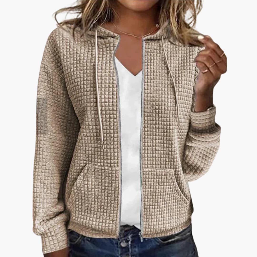 Dieses karierte Jackett für Damen überzeugt durch eine strukturierte Form und eine moderne Optik. Es eignet sich für vielfältige Anlässe und wurde für Frauen entworfen, die ein passendes Kleidungsstück mit klarer Passform und angenehmer Oberfläche suchen.