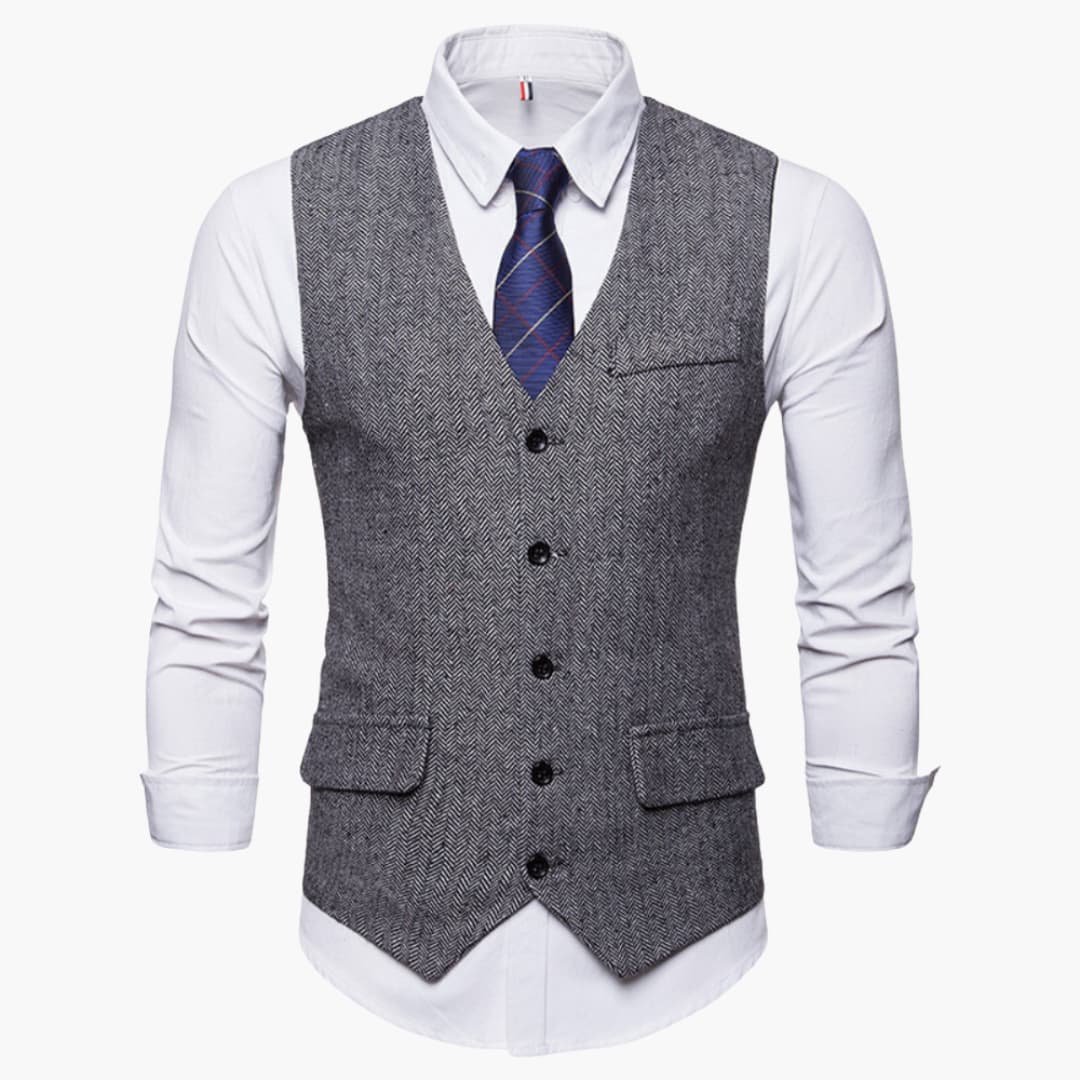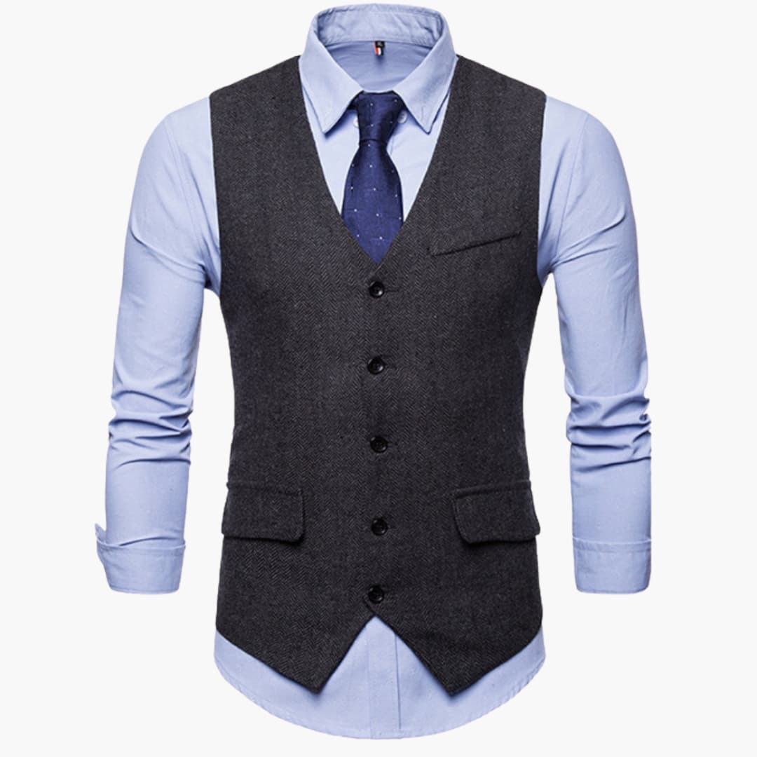 Klassischer Schnitt: Traditioneller V-Ausschnitt mit Knopfleiste für einen zeitlosen Look.
