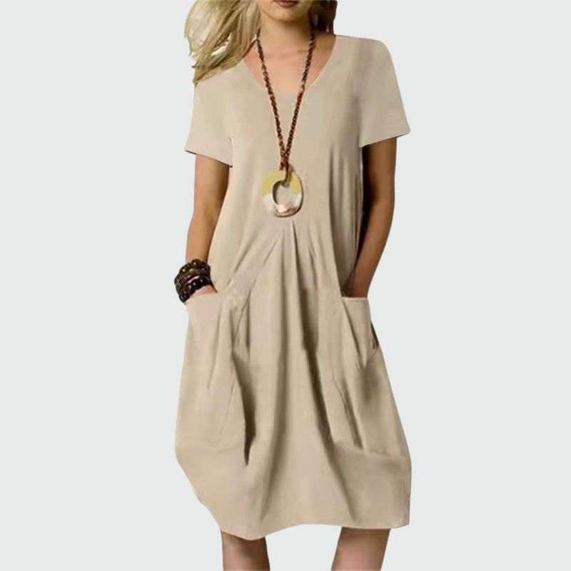Das Abey Kleid ist aus hochwertigem, atmungsaktivem Stoff gefertigt und bietet sowohl Komfort als auch Haltbarkeit. Der knielange Schnitt sorgt für eine schmeichelhafte Silhouette, die jeden Körpertyp ergänzt. Kombinieren Sie dieses vielseitige Kleid mit Ihren Lieblingsaccessoires und -schuhen für ein komplettes, schickes Ensemble.