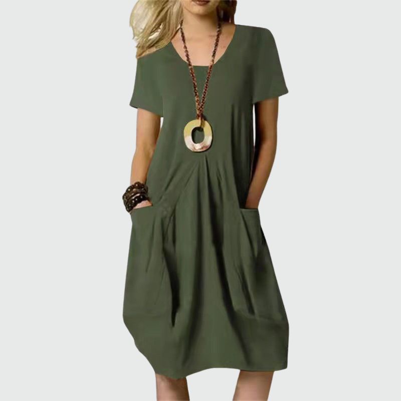Das knielange Kleid - Abey verleiht Ihnen mühelose Eleganz. Dieses raffinierte Kleid ist perfekt für eine Vielzahl von Anlässen, von legeren Ausflügen bis hin zu halb-formellen Veranstaltungen. Das zeitlose Design sorgt dafür, dass Sie in jeder Situation souverän und elegant aussehen.