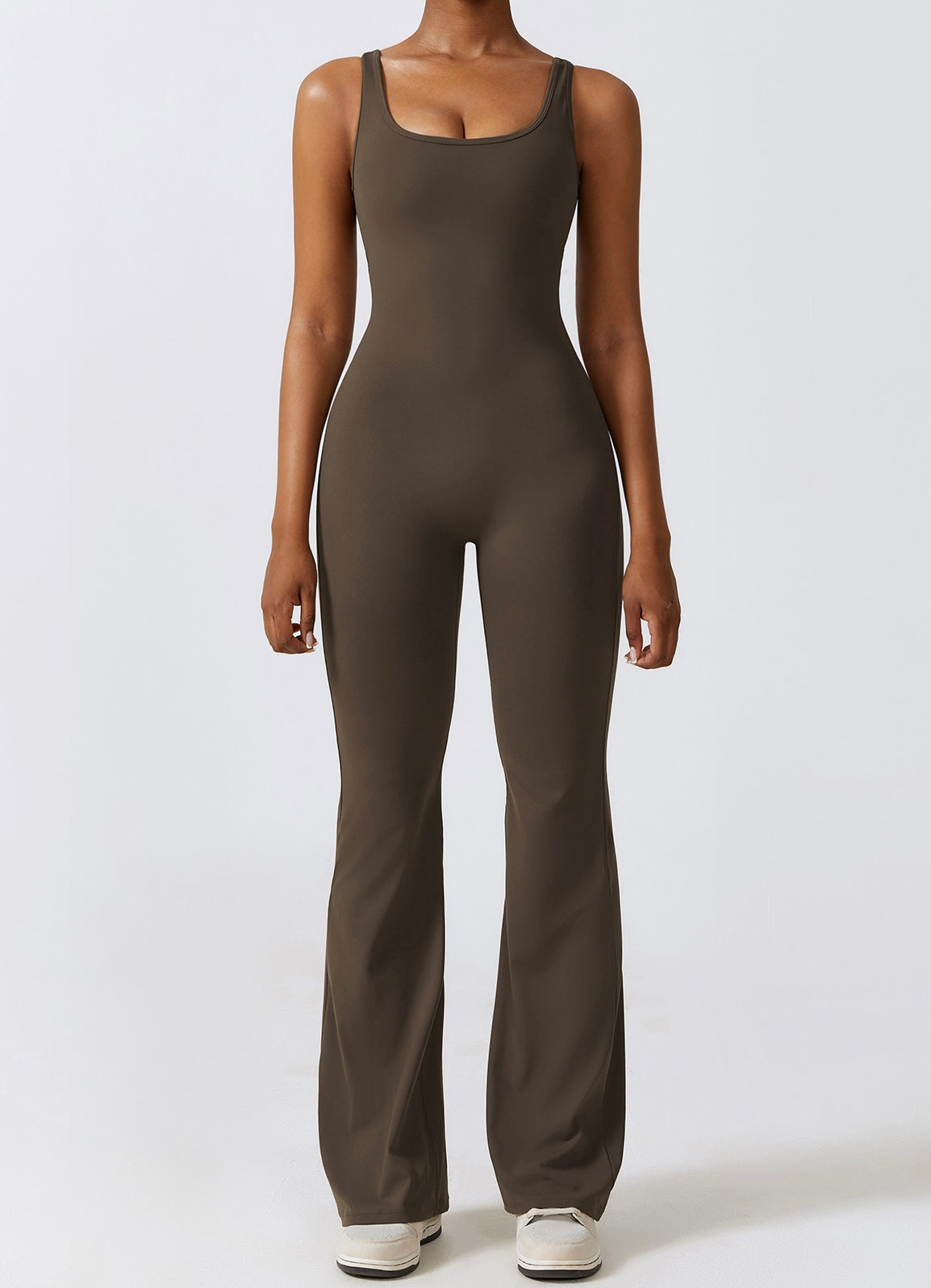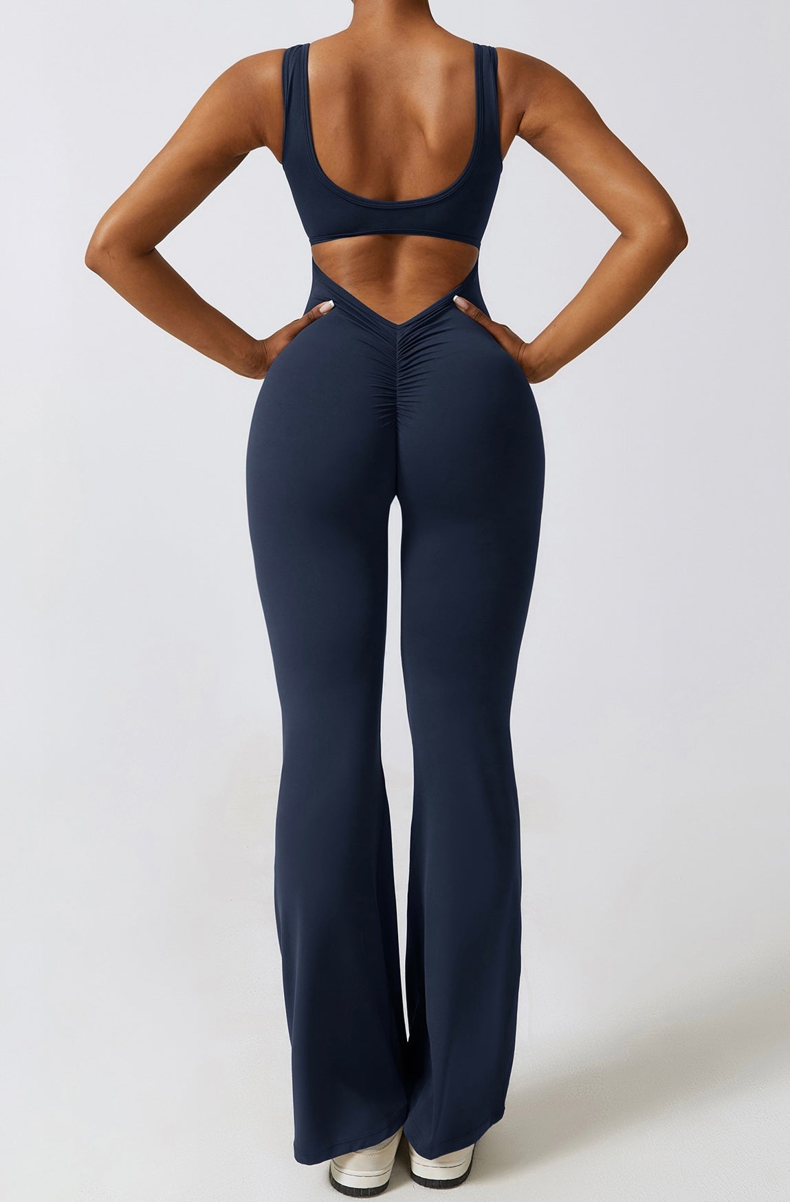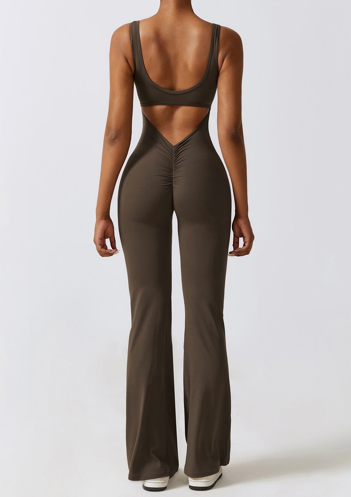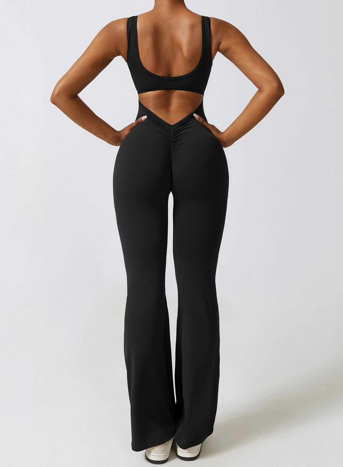 • Elegantes Design: V-Ausschnitt, Scrunch-Effekt und ausgestellte Hosen für Stil und Komfort.