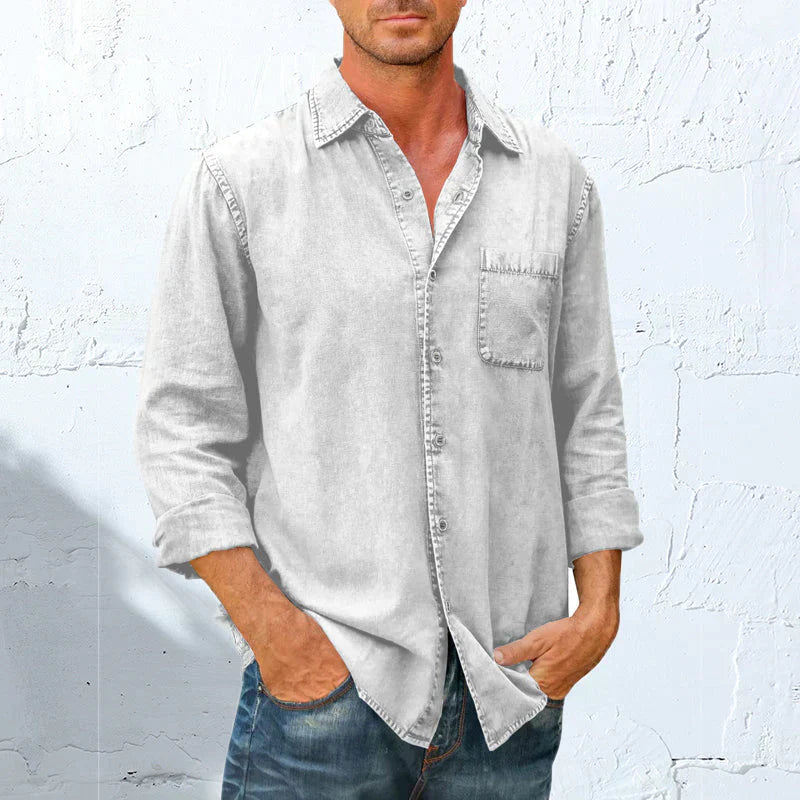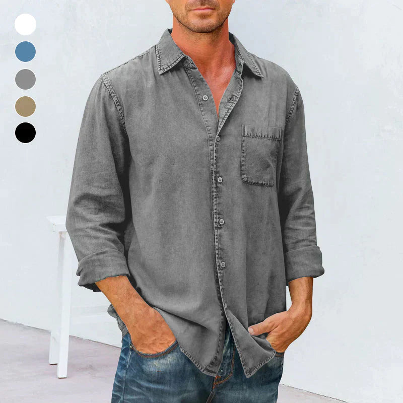 Langärmeliges Denim Hemd mit Knopfleiste für Männer