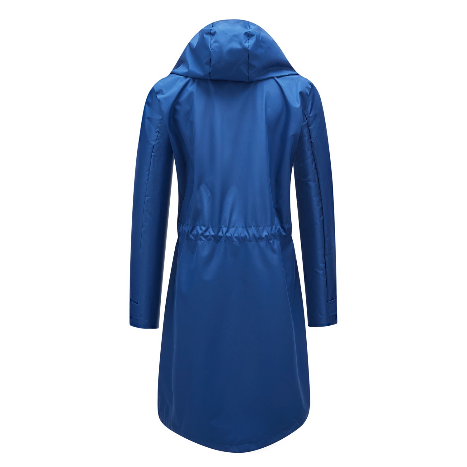 Diese lange Regenjacke für Frauen kombiniert praktischen Schutz mit einem eleganten Look. Mit einer verstellbaren Kapuze, Reißverschluss und seitlichen Taschen bietet sie Funktionalität und Komfort. Die Kordelzüge an der Taille sorgen für eine individuelle Passform, während der wasserabweisende Stoff Sie trocken hält.