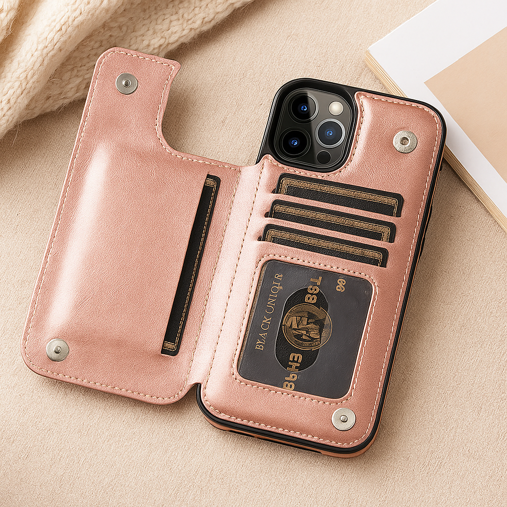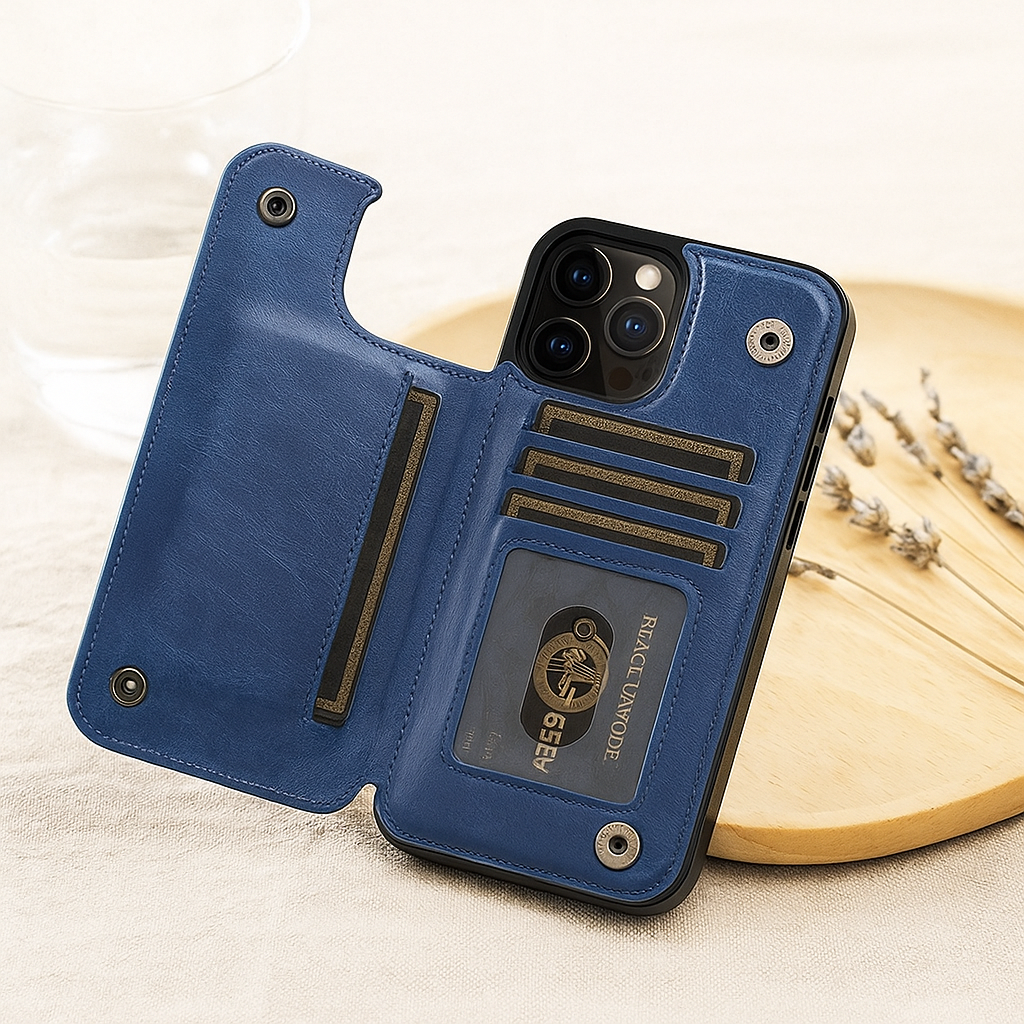 Rüsten Sie Ihr Telefon mit einem Etui auf, das Stil und Funktionalität kombiniert. LeatherGuard | Luxuriöses Lederetui mit Kartenfächern und magnetischem Verschluss | Madsen ist so konzipiert, dass es Ihrem Gerät den Schutz bietet, den es verdient – und gleichzeitig Ihre Karten sowie wichtigsten Wertsachen stets griffbereit hält.