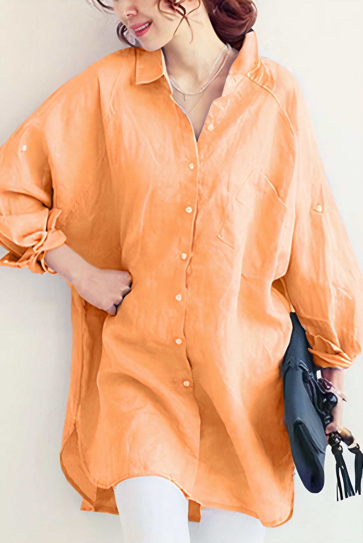 Das lockere Sommerhemd Cynthia bringt einen Hauch von entspannter Eleganz in Ihre Garderobe für das warme Wetter. Das Hemd ist aus einer hochwertigen Leinen-Baumwoll-Mischung gefertigt und garantiert Atmungsaktivität und Komfort zu jeder Jahreszeit. Der großzügige Schnitt bietet eine entspannte Passform und eignet sich daher perfekt für entspannte Tage oder legere Ausflüge.