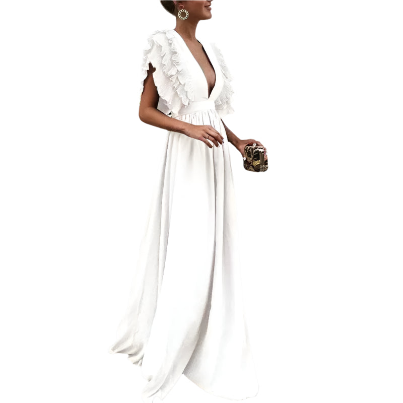 LuxeFlair Maxikleid mit tiefem V-Ausschnitt und Rüschensäumen