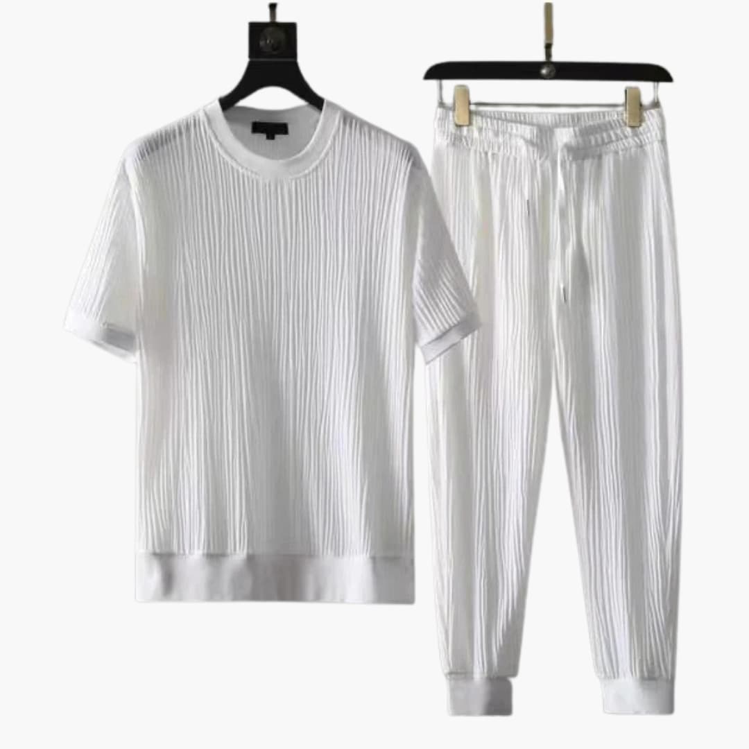 Männer Plissee Zweiteiler mit Rundhals T-Shirt und Jogginghose