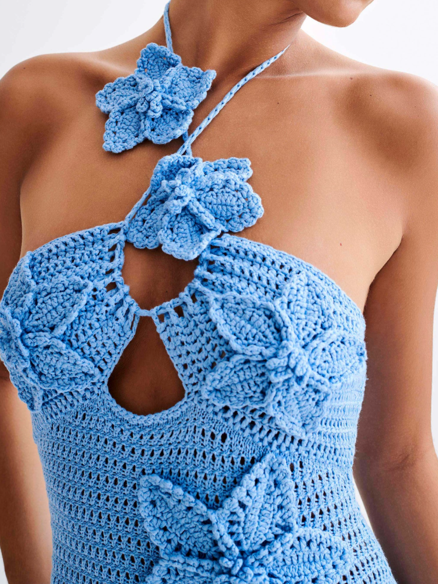 Peppen Sie Ihre Garderobe mit dem bezaubernden Nania Flora Romance Crochet Maxi  Dress auf. Dieses bezaubernde Kleidungsstück strahlt Weiblichkeit und Anmut aus und ist perfekt für Veranstaltungen bei warmem Wetter. Das Halfterdesign verleiht dem Kleid einen besonderen Reiz und ermöglicht ein vielseitiges Styling. Die zarten Häkelblumenapplikationen verleihen dem Kleid eine romantische Ausstrahlung.