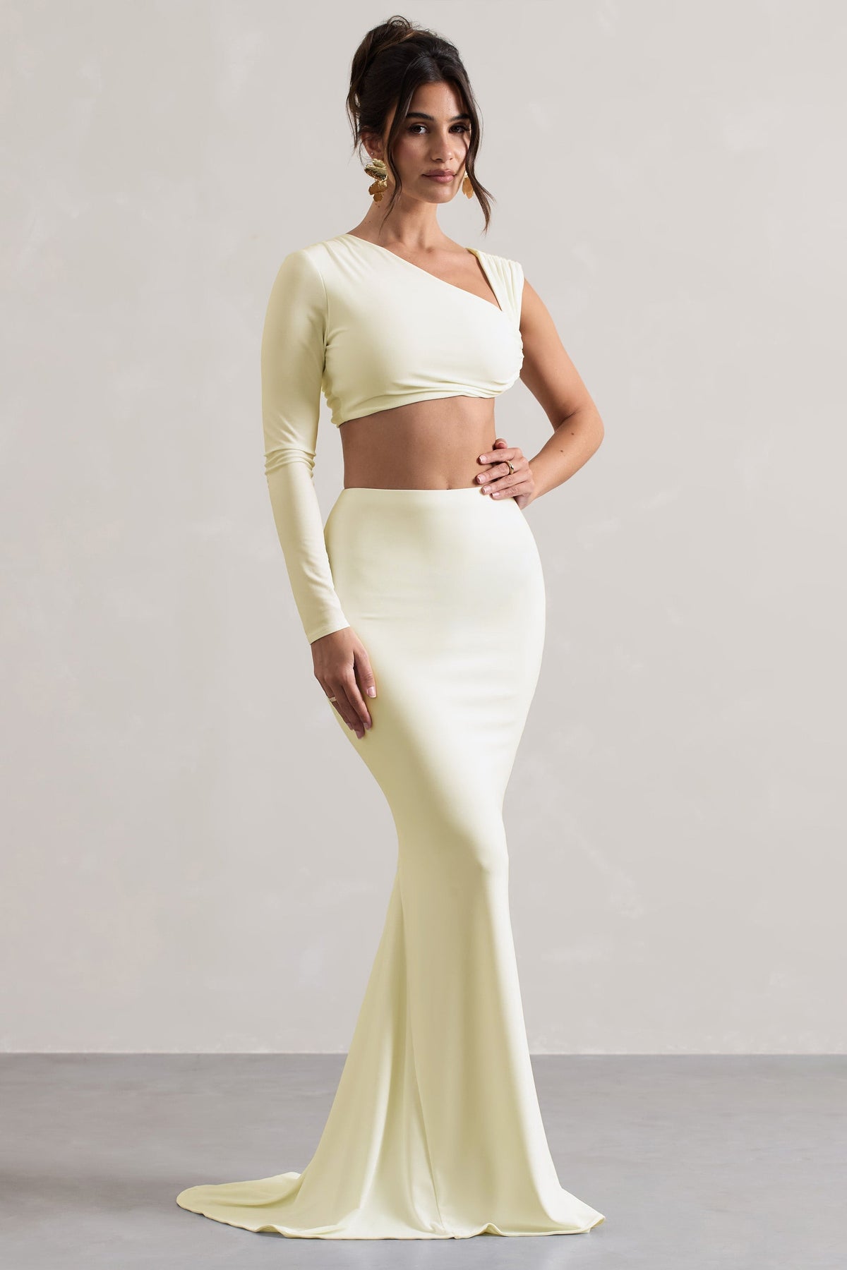 Suchen Sie einen Maxirock, der perfekt sitzt und Ihre Kurven betont? Dann brauchen Sie Neomie. Gefertigt aus luxuriösem cremefarbenem Stretch-Jersey, besticht Neomie durch eine schmeichelhafte hohe Taille und einen eleganten Fischschwanzsaum. Kombinieren Sie diesen atemberaubenden Maxirock mit unserem Agalia Crop-Top für einen perfekten Look.