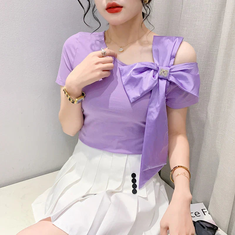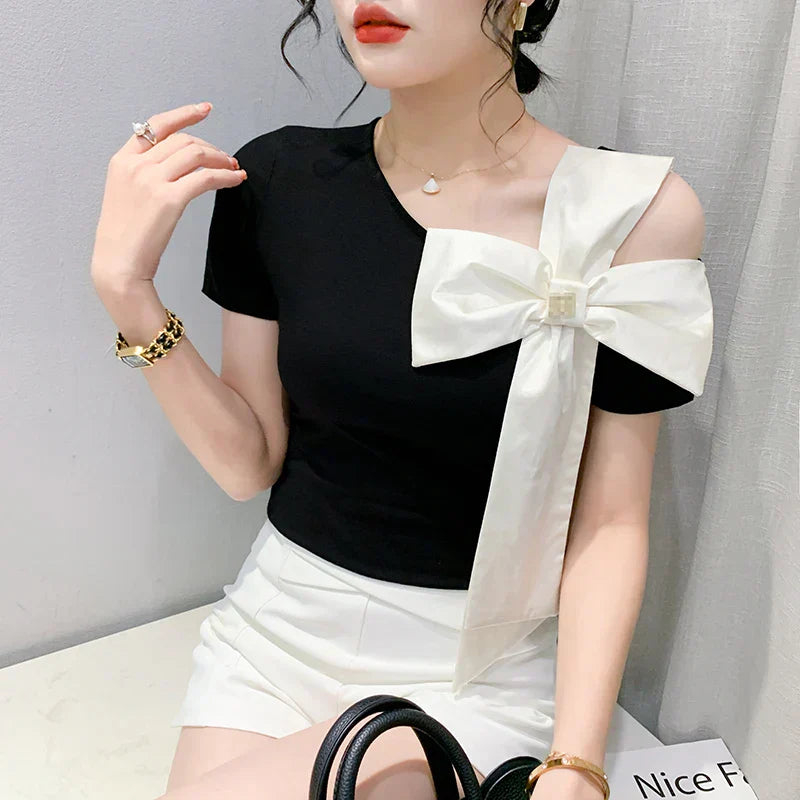 Neues T-Shirt im koreanischen Stil mit großer Schleife