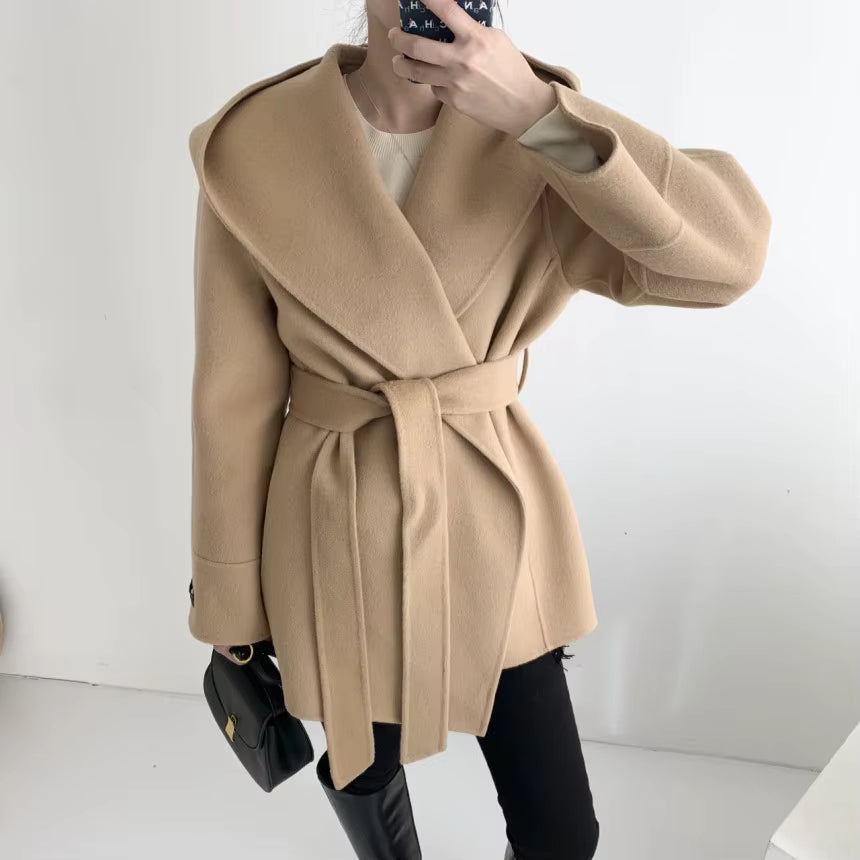 Noelia™ ist der Wollmantel mit Kapuze, der alltägliche Funktionalität und schlichten Stil vereint. Der fließende Schnitt, der minimalistische Verschluss und die großzügige Kapuze sorgen für einen lässigen, aber stets gepflegten Look.