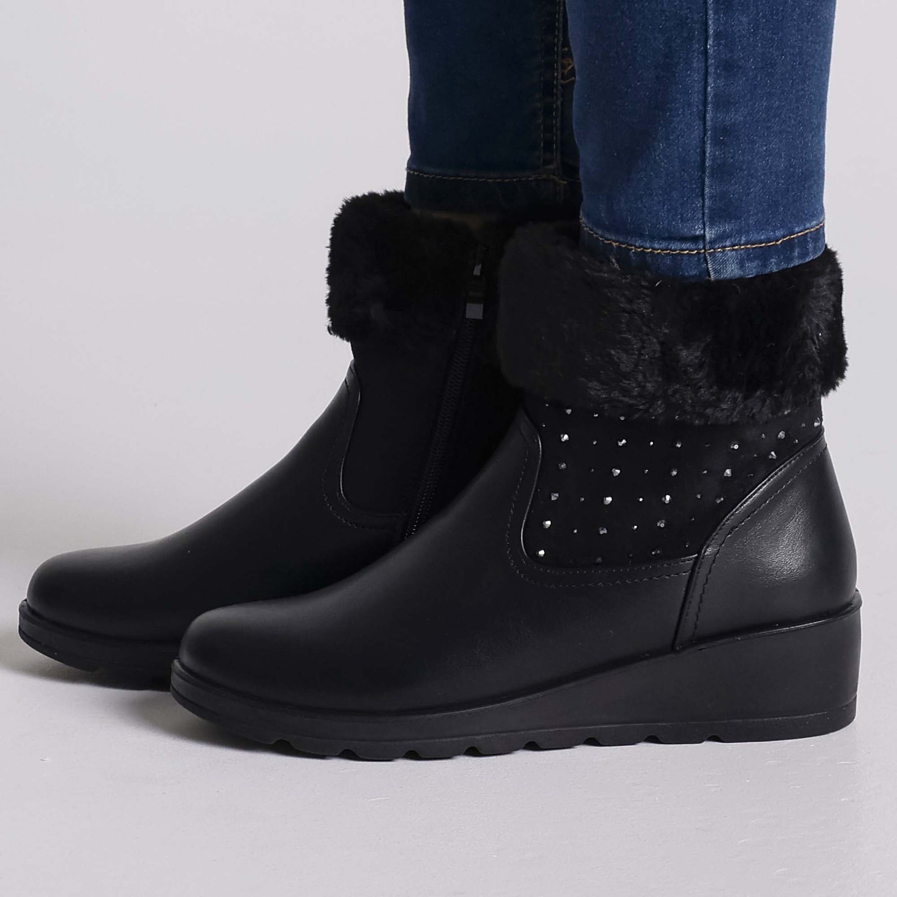Bequem und warm, verbessern diese Stiefeletten die Haltung der Trägerin und bieten maximalen Komfort, selbst an kalten Wintertagen. Dank der ULTRA LEICHTEN Plateausohle sind sie unglaublich leicht und angenehm zu tragen.