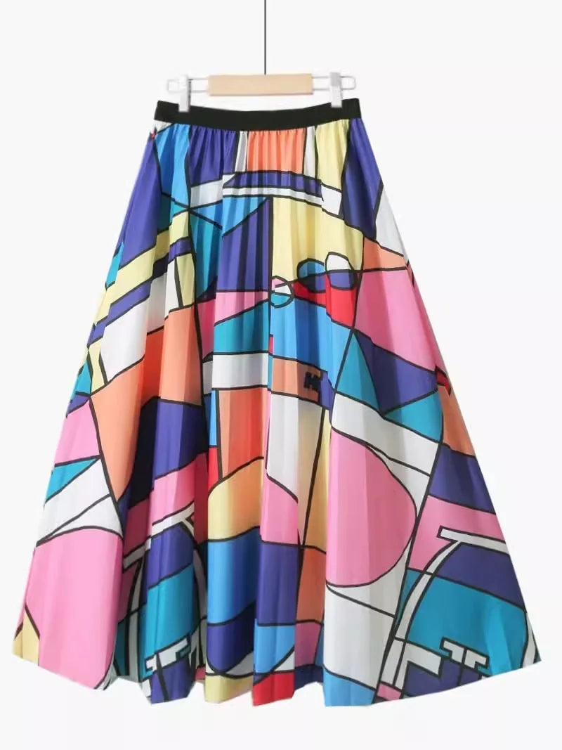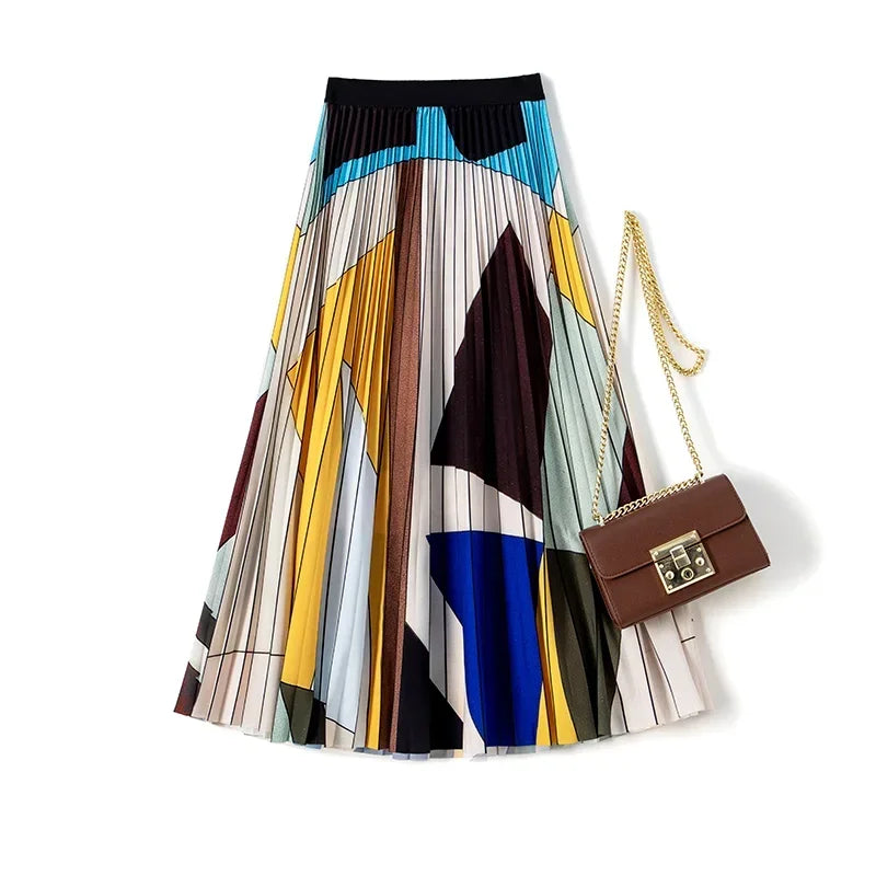 Deze rok is een echte blikvanger met zijn combinatie van herfstkleuren, blokken, bloemen, strepen en stippen. Het A-lijn model en de kuitlengte zorgen voor een flatterend silhouet. Deze rok is gemaakt van hoogwaardig materiaal en biedt niet alleen een trendy look, maar is ook heel comfortabel om te dragen.