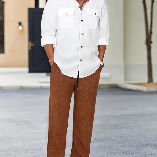 • Zweiteiliges Set : Hemd mit langen Ärmeln + Hose – ideal für Freizeit oder Alltag.
