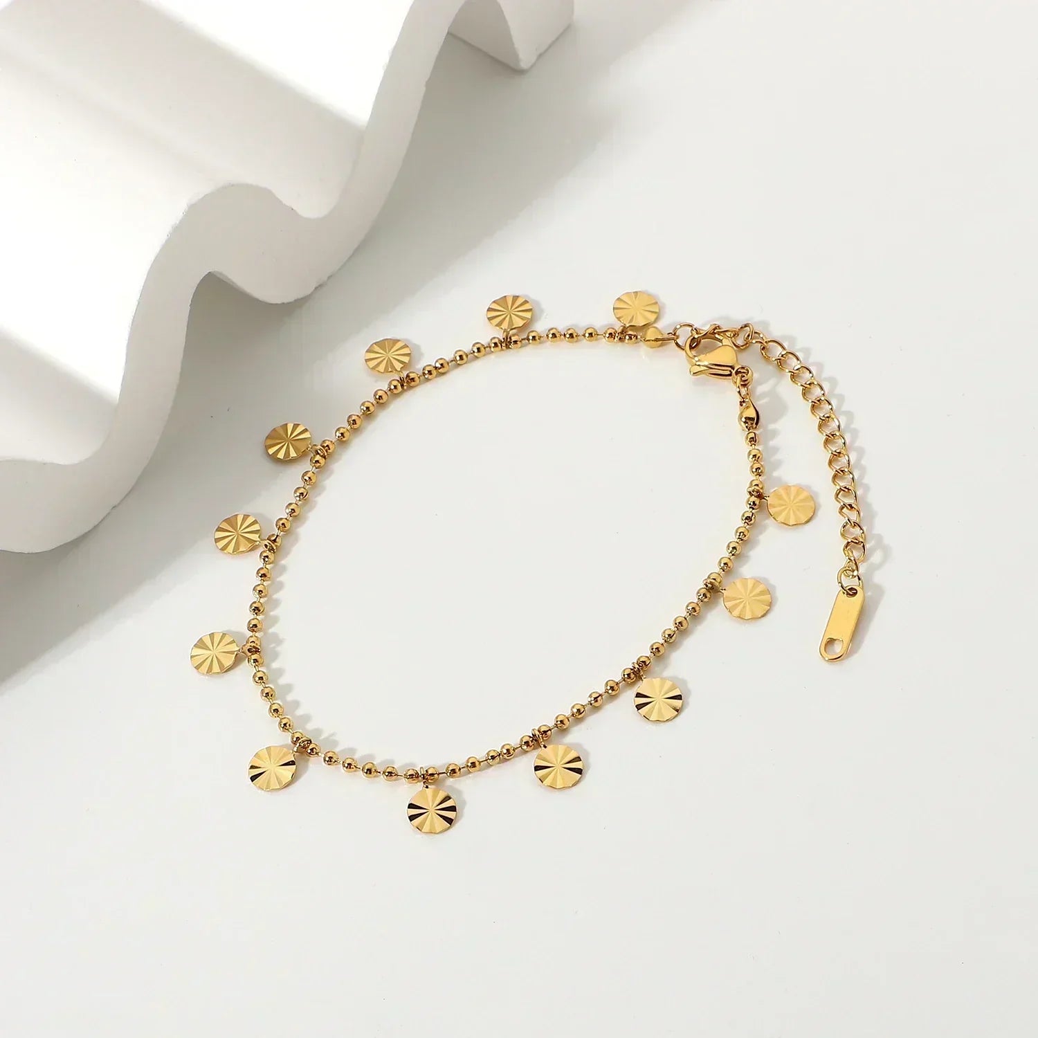 Erleben Sie zeitlose Opulenz. Das 18K Sloane Gold Fußkettchen ist mit einer wasserfesten PVD-Beschichtung versehen, die seine Langlebigkeit und seinen Glanz auch bei Wasserkontakt bewahrt. Neben der Robustheit überzeugt es mit seinem blütenartigen Design, das sich mühelos mit jedem Outfit – ob lässig oder elegant – kombinieren lässt.