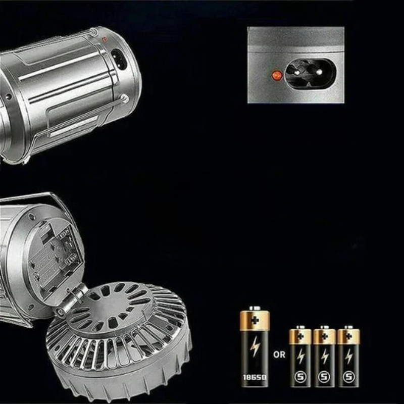 SolarBreeze LED Campinglaterne – Zusammenklappbares Licht mit Eingebautem Ventilator und USB-Wiederaufladbarem Strom