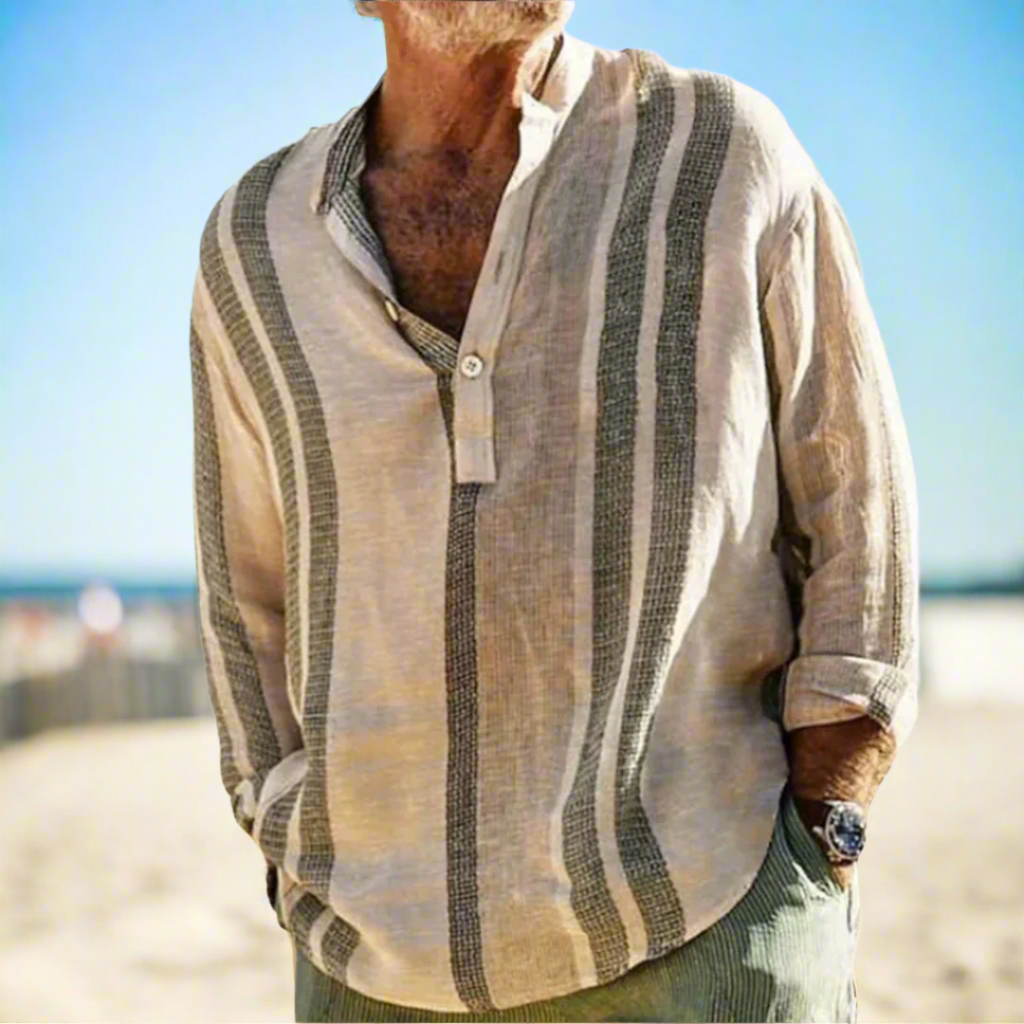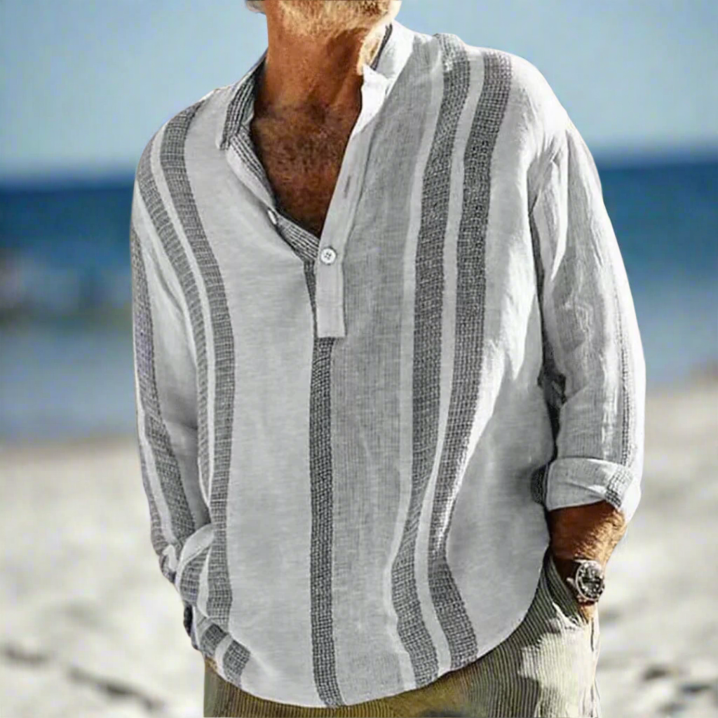 Sommerhemd für Herren - Leichtes gestreiftes Hemd mit Mao-Kragen