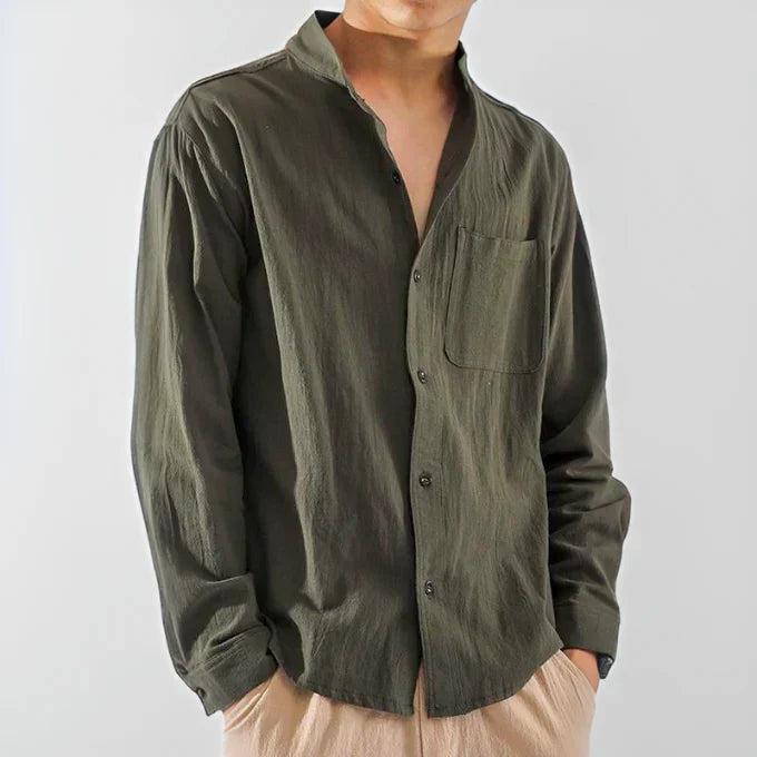 Lässiges Stehkragenhemd für Herren aus Leinen – ideal für warme Tage