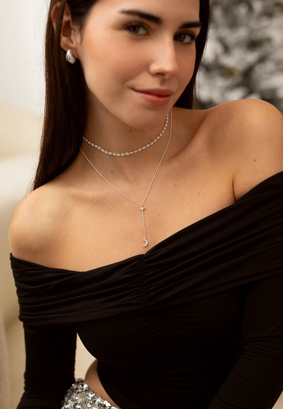 Entdecke die SternenhafteNacht– eine Halskette, die Eleganz und Mystik auf einzigartige Weise verbindet. Mit ihrem bezaubernden Stern- und Mond-Design verleiht die SternenhafteNacht jedem Outfit eine besondere Note. Hochwertige Materialien und funkelnde Steine machen sie zu einem absoluten Highlight. Die SternenhafteNacht ist mehr als nur Schmuck – sie ist ein Statement für alle, die das Besondere lieben.
