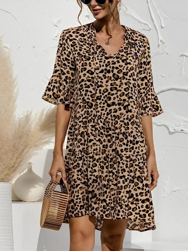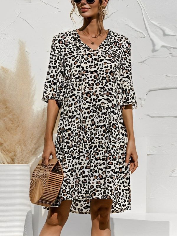 Dieses hoch taillierte Sommerkleid betont perfekt Ihre Kurven und bietet gleichzeitig puren Komfort und Atmungsaktivität. Mit V-Ausschnitt, 3/4-Ärmeln, Rüschen und einem Bindeband am Ausschnitt passt sich die lockere und bequeme Passform nahtlos an Ihren Körper an.