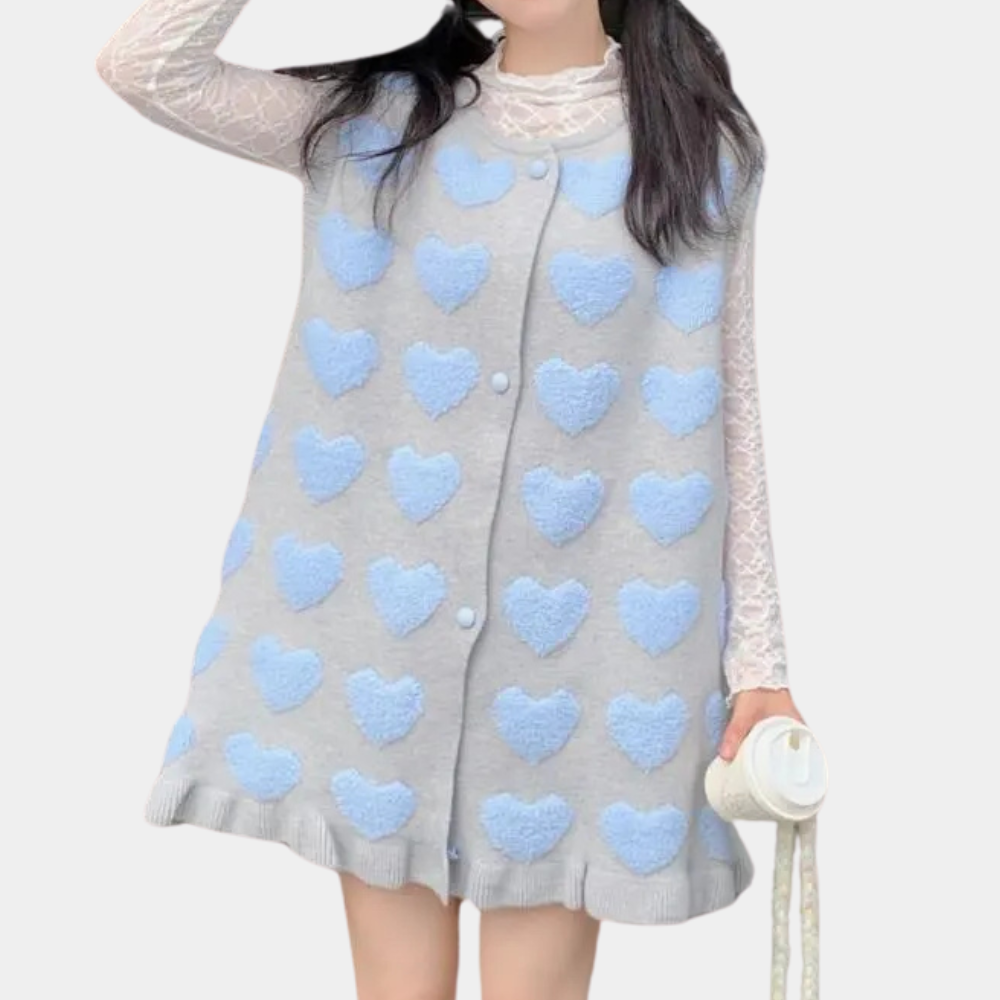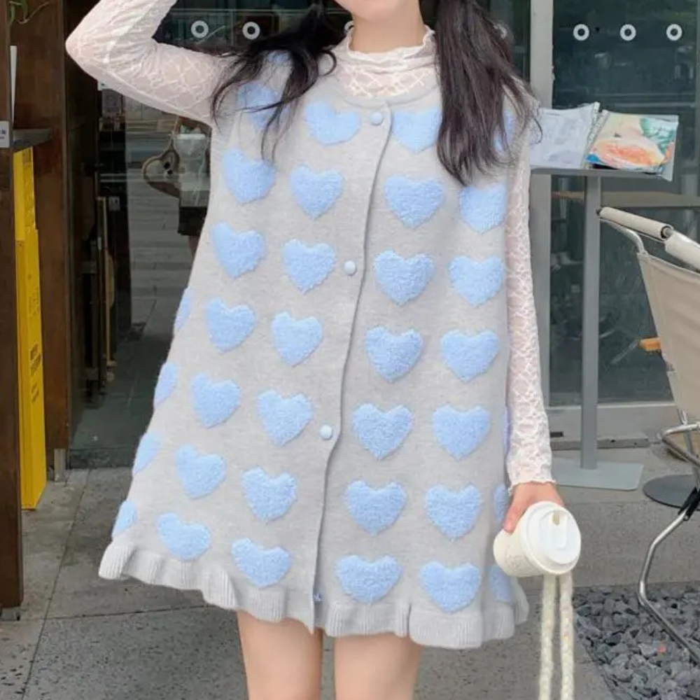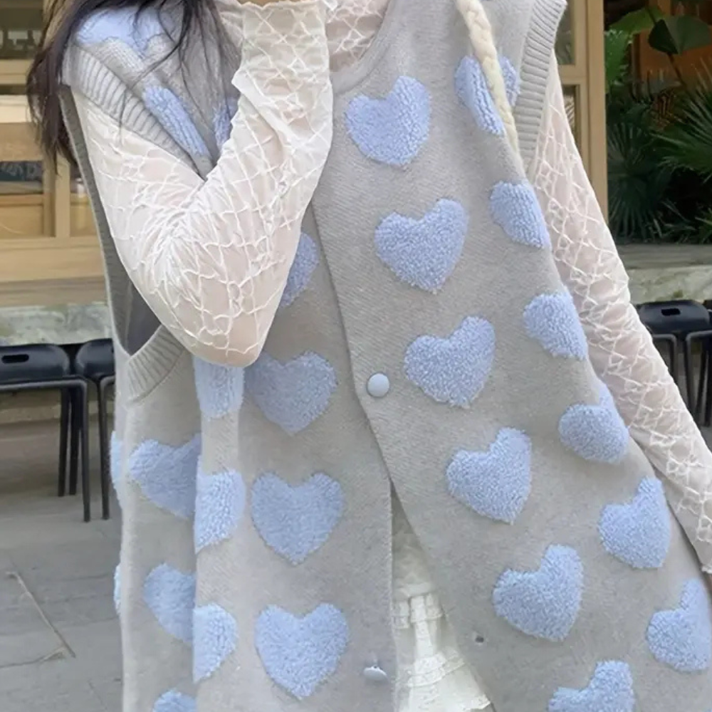 Diese bezaubernde Strickweste mit Herzmotiv ist ein echtes Highlight für verspielte und romantische Looks. Die lockere Passform sorgt für ein angenehmes Tragegefühl, während die flauschigen Herzdetails einen verspielten Akzent setzen. Perfekt für einen niedlichen und trendigen Auftritt!