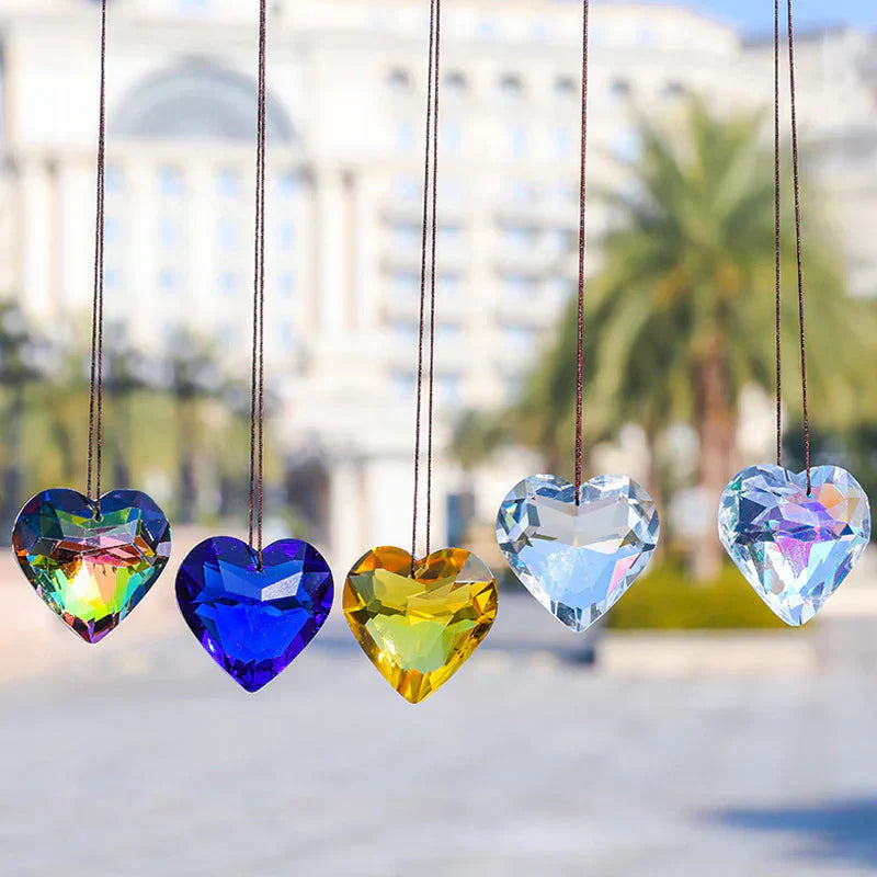• Herzförmiger Sonnenfänger mit hängendem Kristallanhänger
