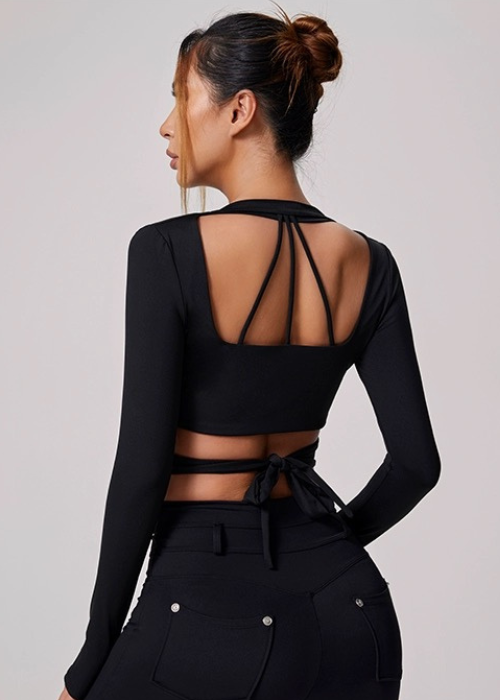 Elegantes Design : Mit seinen klaren Linien und dem offenen Rücken, der mit feinen Trägern verziert ist, ist dieses T-Shirt ein echter Modegewinn, der über einfache Sportbekleidung hinausgeht und in eine anspruchsvolle und vielseitige Garderobe passt.