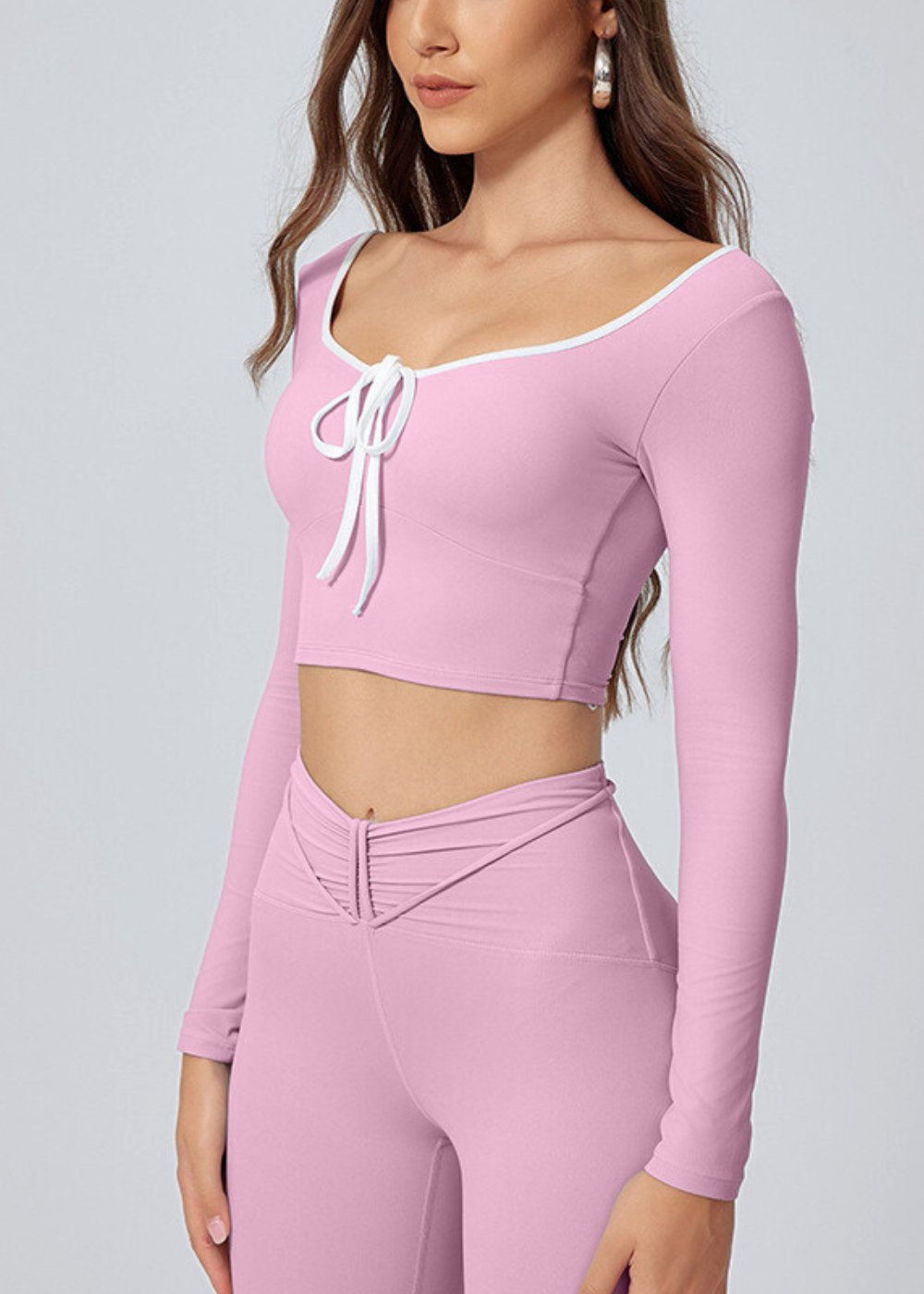 Design & Passform: Mit seinem Rundhalsausschnitt, der mit einem eleganten weißen Band zum Binden verziert ist, vereint dieses Modell Weiblichkeit und Schlichtheit. Die langen Ärmel und der verkürzte Schnitt betonen die Taille und sorgen für eine schmeichelhafte und schlanke Silhouette.