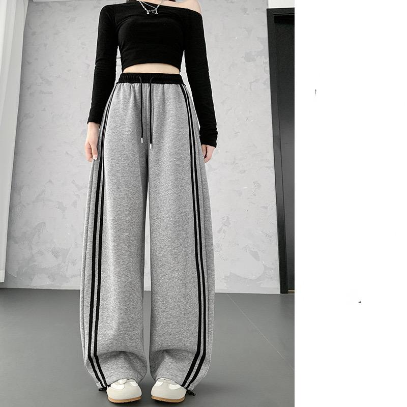 Diese weit geschnittene jogginghose kombiniert sportlichen stil mit maximalem tragekomfort. das weiche, atmungsaktive material und der elastische bund mit kordelzug sorgen für eine perfekte passform, während die seitlichen kontraststreifen für einen modernen, verlängerten look sorgen. ideal für entspannte tage, workouts oder streetstyle-outfits.