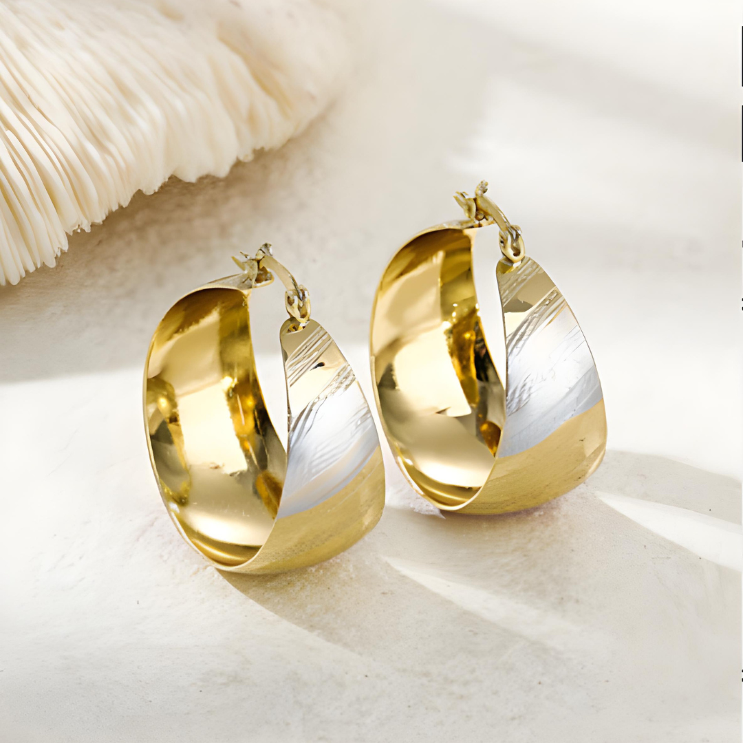 Markant und modern – diese Creolen verbinden glänzendes Gold mit kühler Eleganz in Silberoptik.