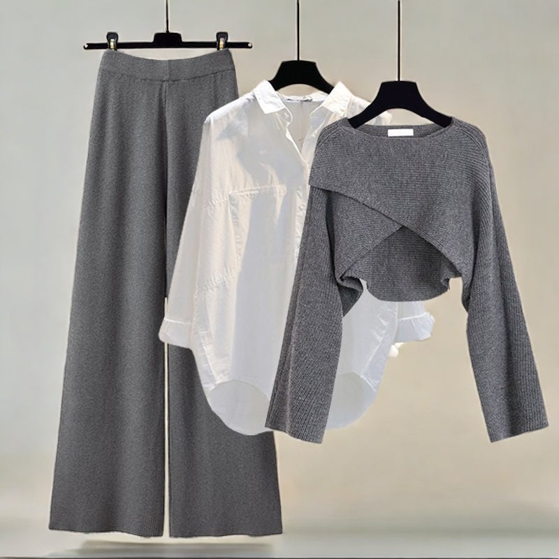 Mit dem Tina | Dreiteiligen Komfort-Set genießen Sie eine perfekte Mischung aus modischer Eleganz und gemütlichem Tragegefühl. Ob zusammen oder einzeln getragen – dieses Ensemble ist ein echtes Must-have für jede Garderobe.