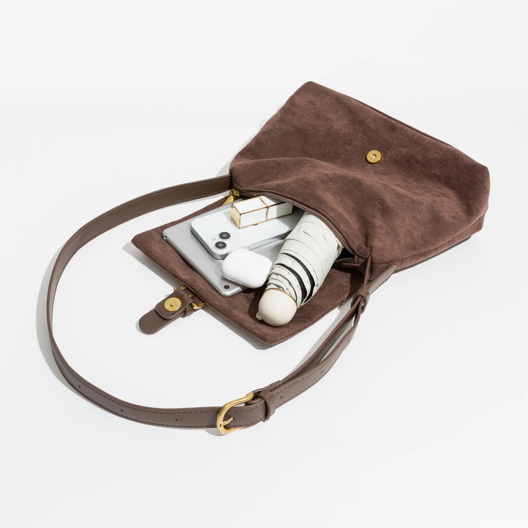 Umhängetasche aus Wildleder | Verstellbarer Riemen | Klassisch und Stilvoll
